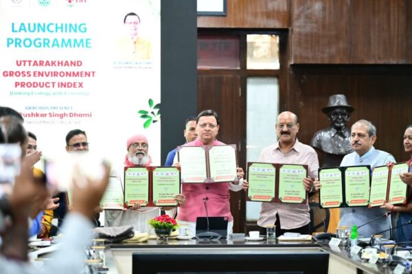 देहरादून: मुख्यमंत्री पुष्कर सिंह धामी ने शुक्रवार को सचिवालय में पारिस्थितिकी को अर्थव्यवस्था से जोड़ने के लिए ‘‘उत्तराखण्ड सकल पर्यावरण उत्पाद सूचकांक’’ (जी.ई.पी) लॉच किया। जी.ई.पी का शुभारम्भ करने वाला उत्तराखण्ड पहला राज्य है। उत्तराखण्ड सकल पर्यावरण उत्पाद सूचकांक का आंकलन 04 मुख्य घटकों जल, वायु, वन और मृदा के आधार पर किया गया है। मुख्यमंत्री ने कहा कि जी.ई.पी के प्रभावी क्रियान्वयन के लिए एक प्रकोष्ठ बनाया जायेगा।