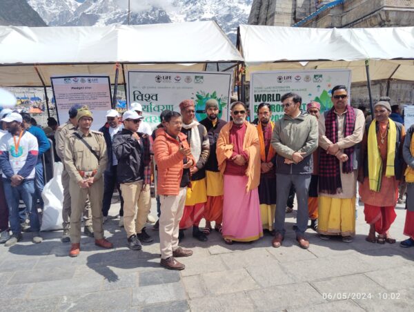 विश्व पर्यावरण दिवस के अवसर पर श्री केदारनाथ धाम के मुख्य पुजारी रावल जीए तीर्थ पुरोहित समाज, मन्दिर समिति, नगर पंचायत  केदारनाथ सुलभ इंटर नैशनल, पुलिस प्रशासन, जिला आपदा प्रबन्धन राजस्व प्रशासन, समस्त सेक्टर प्रभारी केदारनाथ वन्यजीव प्रभाग के उप प्रभागीय वनाधिकारी जुगल किशोर चैहान, वन क्षेत्राधिकारी  प्रदीप कुमार गौड़ एवं अन्य स्टाफ द्वारा आयोजन में प्रतिभाग किया गया।