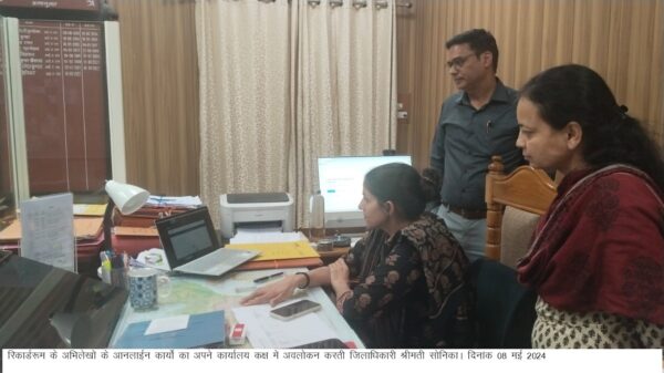 देहरादून : जनपद देहरादून की अभिनव पहल शीघ्र रिकार्डरूम के अभिलेख पोर्टल पर अभिलेखों की तहसीलवार जानकारी अब एक ही क्लिक में ऑनलाइन मिलेगी। जिस पर आज जिलाधिकारी सोनिका ने अपने कार्यालय कक्ष में वेबसाईट पर अद्यतन कार्यों का अवलोकन करते हुए सम्बन्धित अधिकारियों के साथ कार्य प्रगति की समीक्षा की। जिला प्रशासन देहरादून द्वारा जनपद में तहसीलवार अभिलेखों को पोर्टल पर अद्यतन किये जाने की कार्यवाही गतिमान है। जिलाधिकारी ने जल्द से जल्द कार्यों को पूर्ण करने के कड़े निर्देश दिए।