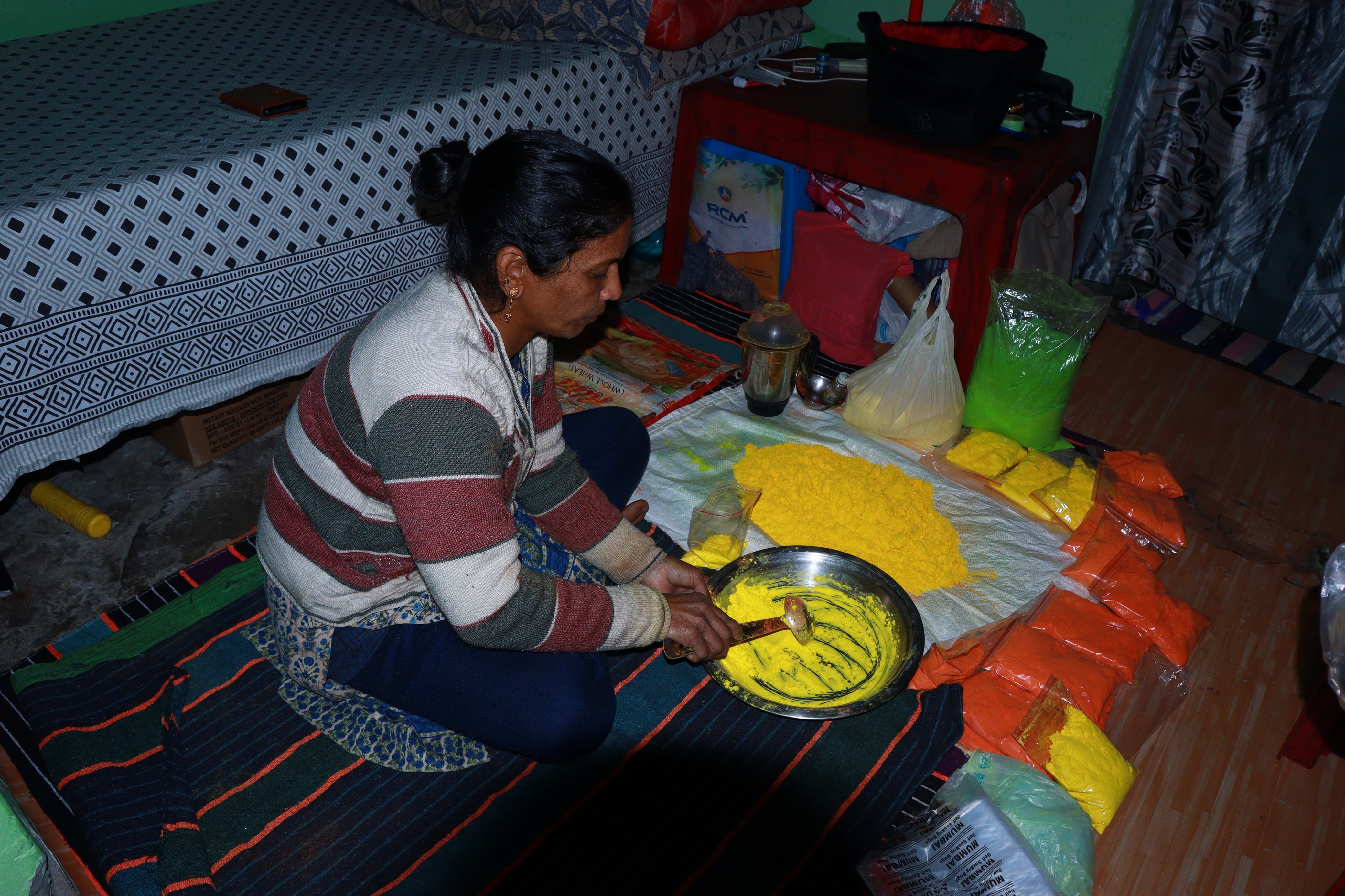 वर्तमान में होली के त्योहार को देखते हुए रीना देवी घर पर ही स्थानीय स्तर पर उपलब्ध सामग्री से हर्बल रंग तैयार कर बाजार में बेच रही है। रीना ने बताया कि प्राकृतिक रंग बनाने के लिए उन्होंने पालक और चुकंदर सहित अन्य वस्तुओं का प्रयोग किया। उनके द्वारा बनाया गया हर्बल रंग स्थानीय स्तर पर आयोजित कार्यक्रमों में हाथों-हाथ बिक गया। इसके अलावा उन्होंने कुछ पैकेट बिक्री के लिए यूपी के गाजियाबाद भेजे हैं।