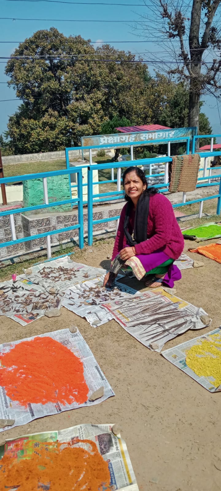 पौड़ी : होली का त्योहार रंगों और खुशियों का प्रतीक है। रंगों की बढ़ती मांग को देखते हुए बाजार में रासायनिक रंग बिकते हैं। लेकिन इन रंगों से त्वचा और आंखों को नुकसान पहुंचने का खतरा बना रहता है। इसे देखते हुए लोग हर्बल रंगों की डिमांड कर रहे हैं। ऐसे में सरकारी योजनाओं की सहायता से जिले में कुछ महिलाएं हर्बल रंग बनाने का काम रही हैं। यह रंग हाथों-हाथ बिक रहे है। इन्ही महिलाओं में शामिल है विकास खंड पौड़ी के निसणी गांव की रीना देवी। रीना व्यक्तिगत रूप से घर पर ही हर्बल रंग बना रही हैं।