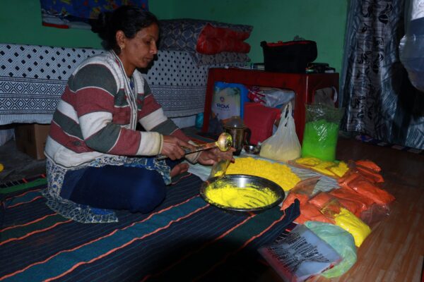 वर्तमान में होली के त्योहार को देखते हुए रीना देवी घर पर ही स्थानीय स्तर पर उपलब्ध सामग्री से हर्बल रंग तैयार कर बाजार में बेच रही है। रीना ने बताया कि प्राकृतिक रंग बनाने के लिए उन्होंने पालक और चुकंदर सहित अन्य वस्तुओं का प्रयोग किया। उनके द्वारा बनाया गया हर्बल रंग स्थानीय स्तर पर आयोजित कार्यक्रमों में हाथों-हाथ बिक गया। इसके अलावा उन्होंने कुछ पैकेट बिक्री के लिए यूपी के गाजियाबाद भेजे हैं।