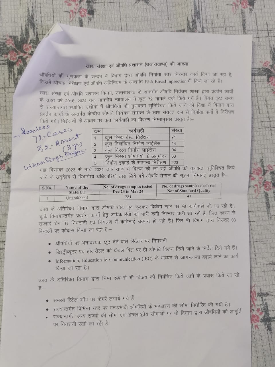 उत्तराखंड : नकली दवा कंपनियों पर ड्रग विभाग की बड़ी कार्रवाई, 03 साल में 72 लोगों के खिलाफ केस दर्ज, 32 लोगों को भेजा जेल