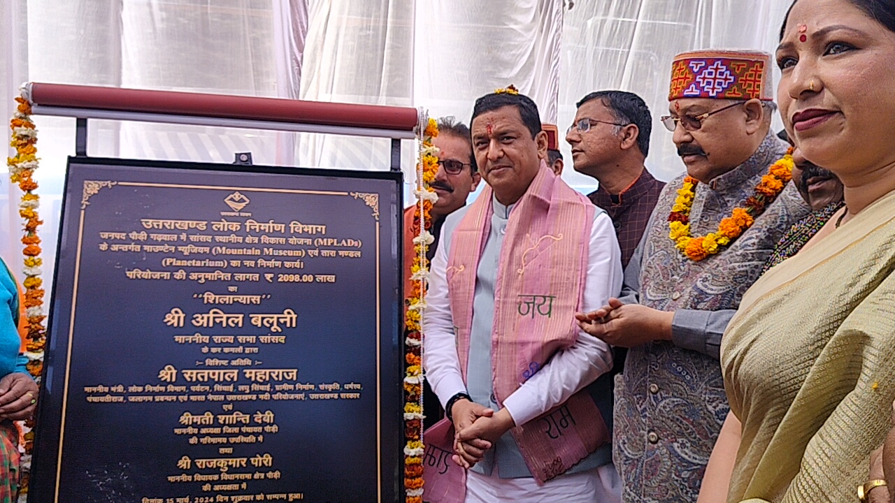 इसके पश्चात रामलीला मैदान में मुख्य कार्यक्रम स्थल पर राज्यसभा सांसद अनिल बलूनी ने अपने संबोधन में कहा कि इस परियोजना के आकार लेने के पश्चात संपूर्ण गढ़वाल क्षेत्र में पर्यटन गतिविधियों को बढ़ावा मिलेगा। खगोल प्रेमियों के लिए यह आकर्षक स्थल बनकर उभरेगा। विद्यार्थियों के लिए भी जिज्ञासा का केंद्र बनेगा तथा इन सबसे इस क्षेत्र की आर्थिकी में बड़ा सकारात्मक बदलाव आयेगा। उन्होंने कहा कि परियोजना को पूर्ण करने के लिए किसी भी प्रकार से धनराशि की कमी नहीं होने दी जायेगी।