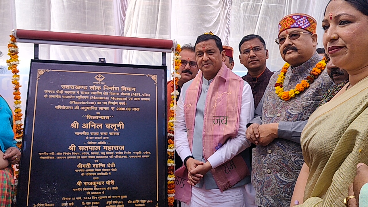 पौड़ी : राज्यसभा सांसद अनिल बलूनी और कैबिनेट मंत्री उत्तराखंड सरकार सतपाल महाराज द्वारा स्थानीय लोगों की उपस्थिति में रांसी स्टेडियम में तारामण्डल और माउण्टेन म्यूजियम का भूमि पूजन करते हुए आधारशीला रखी गयी। सर्वप्रथम रांसी स्टेडियम में शहीद राइफलमैन जसवंत सिंह रावत की मूर्ति पर माल्यार्पण करते हुए उनकों श्रद्धांजलि दी गयी। तत्पश्चात तारामण्डल व माउण्टेन म्यूजियम का भूमि पूजन कार्य संपन्न किया और संबंधित अधिकारियों से तारामण्डल और माउण्टेन म्यूजियम प्रोजेक्ट के प्रगति की जानकारी लेते हुए इसके निर्माण से जुड़ी सभी प्रक्रियाओं को पूर्ण करने को कहा। इसके पश्चात कंडोलिया मंदिर में पूजा-अर्चना करते हुए सभी के खुशहाली की कामना की गयी।