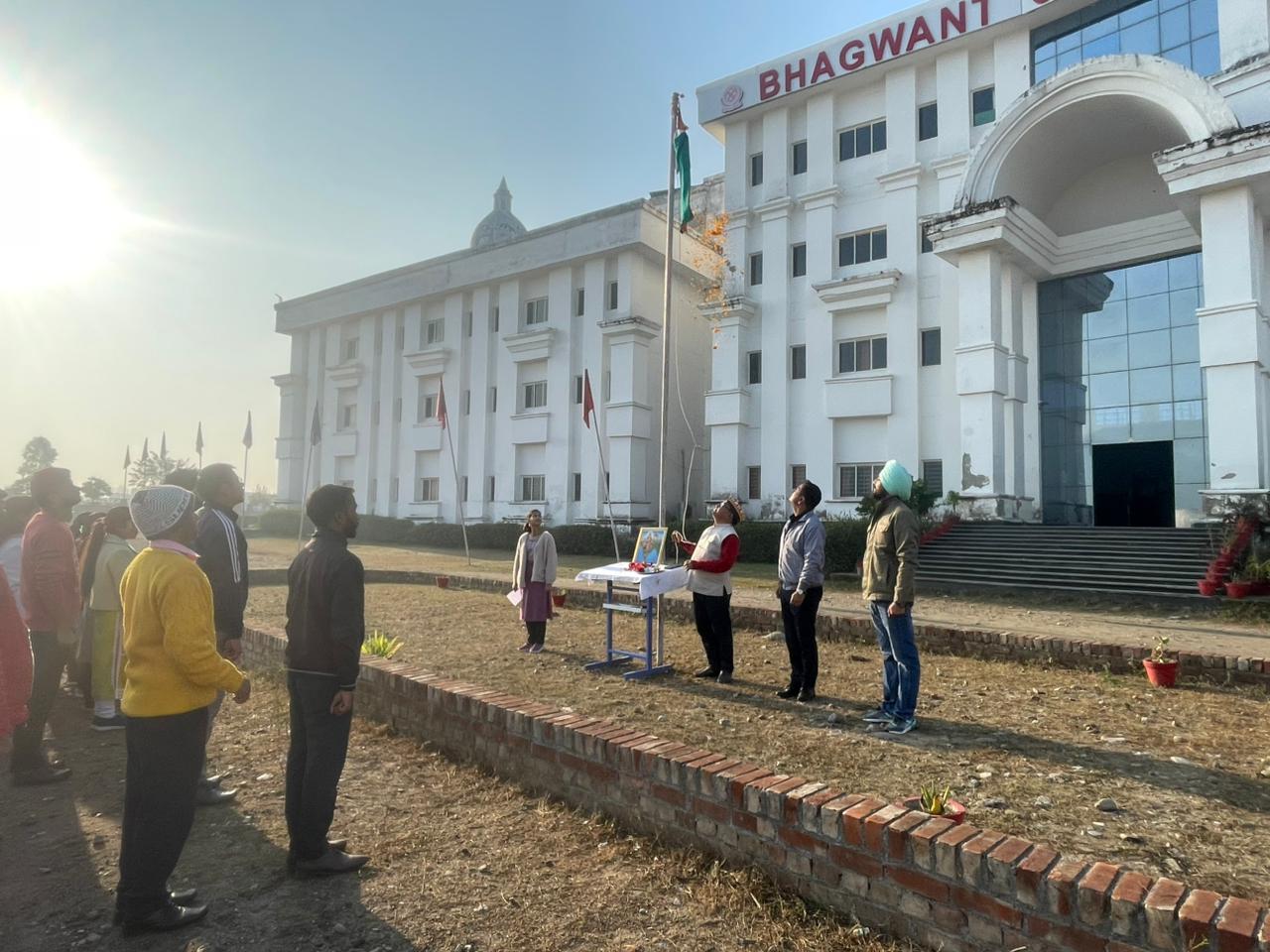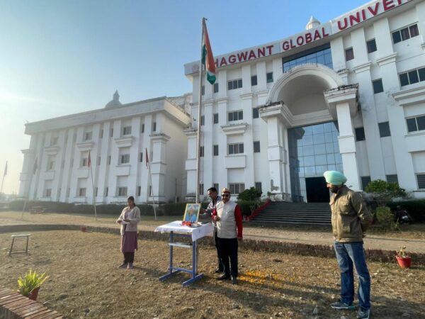कोटद्वार : भाबर स्थित भगवंत ग्लोबल विश्वविद्यालय में 76वें गणतंत्रता दिवस मनाया गया । आज गणतंत्र दिवस के उपलक्ष्य में विश्वविद्यालय द्वारा स्वच्छता कार्यक्रम चलाया गया। कार्यक्रम का शुभारंभ प्रतिकुलपति प्रो. पीएस राणा द्वारा किया गया। प्रो. राणा ने इस अवसर पर बोलते हुए सर्वप्रथम उन सभी स्वाधीनता सेनानियों व अमर शहीदों को श्रद्धांजलि दी जिनके बलिदान से हमारा देश गुलामी से आजाद ही नहीं बल्कि सम्पूर्ण प्रभुत्व सम्पन्न गणराज्य घोषित हुआ। उन्होंने सभी को 76वें गणतंत्रत दिवस की शुभकामनाएं देते हुए अपने कर्तव्य के प्रति निष्ठा, देश व समाज के प्रति अपना कर्तव्य ईमानदारी से निभाने का संकल्प लेने का आवाहन किया। इस अवसर पर स्वच्छता अभियान के तहत कैम्पस की सफाई का आयोजन किया गया।
