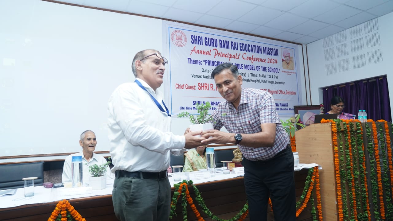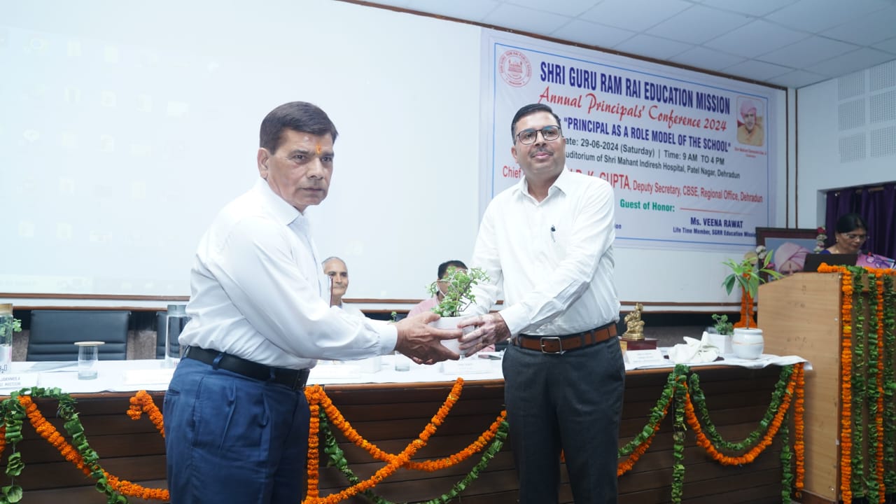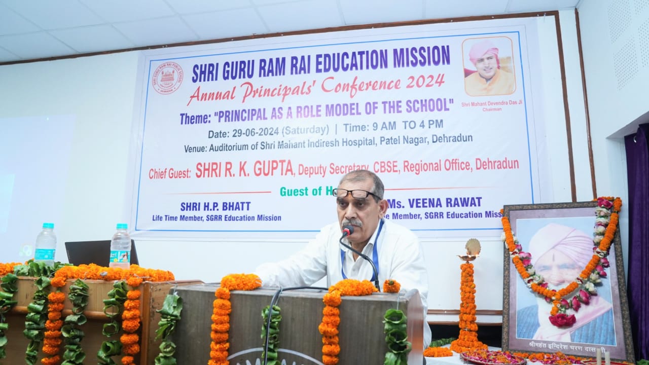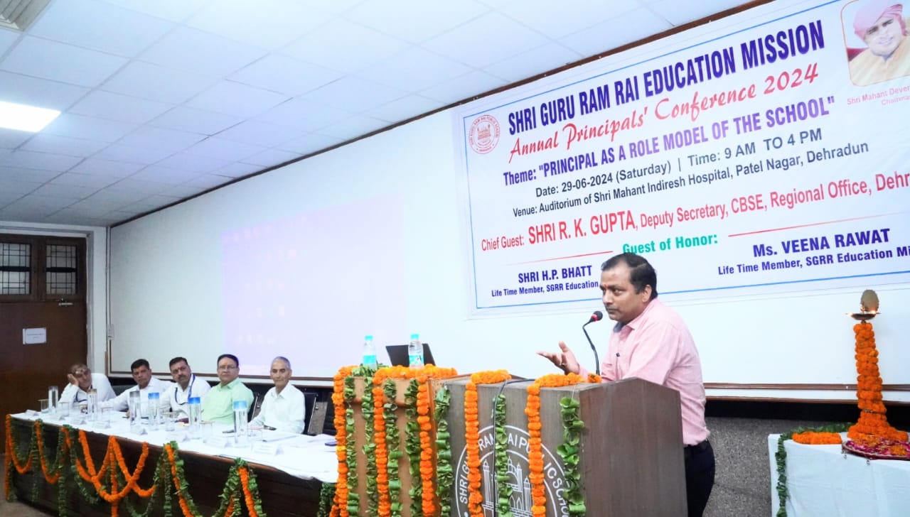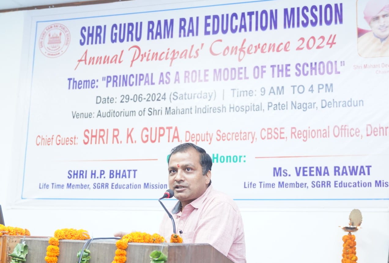 मुख्य अतिथि आर.के.गुप्ता ने कहा कि श्री गुरु राम राय एजुकेशन मिशन के संस्थान गुणवत्तापरक शिक्षा को आम आदमी की पहुंच के अंदर प्रदान कर रहे हैं, यह मिशन का बेहद सराहनीय प्रयास है। उन्होंने सीबीएसई 10वीं एवं 12वीं के परीक्षा परिणामों में एसजीआरआर स्कूली के मेधावी छात्र-छात्राओं के प्रदर्शन को प्रशंसनीय बताया। उन्होंने सभी प्रधानाचार्यों का आह्वाहन किया कि वे सीएबीएसई की वेबसाइट का अध्ययन कर नवीन जानकारियों से अपडेट रहें।  एसजीआरआर एजुकेशन मिशन के आजीवन सदस्य एच.पी.भट्ट ने कहा एसजीआरआर एजुकेशन मिशन के अन्तर्गत संचालित स्कूलों का माॅडल प्रधानाचार्यों के अनुकूल है। प्रधानाचार्य एक कुशल प्रशासक की तरह अपने सकारात्मक विचारों व निर्णयों को कियान्वित करवाकर स्कूल व छात्र हितों में निर्णय ले सकता है।