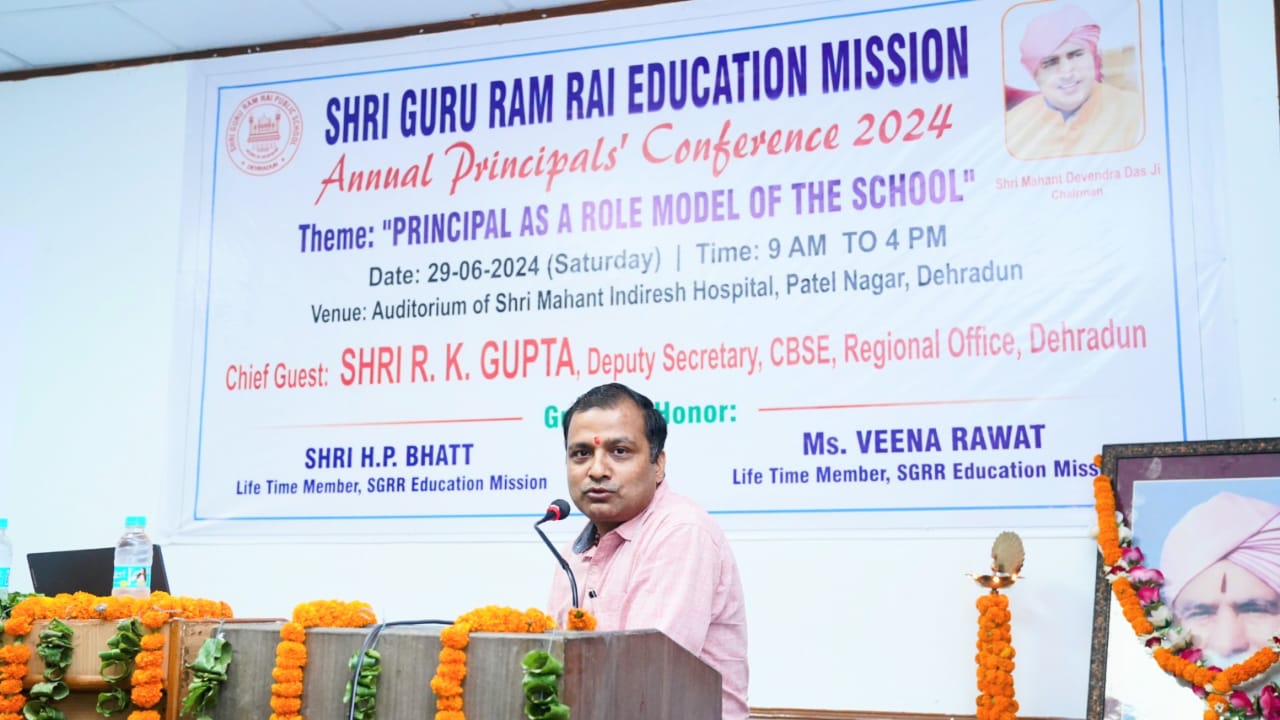 श्री गुरु राम राय एजुकेशन मिशन के अन्तर्गत संचालित एसजीआरआर स्कूलों की वार्षिक प्रधानाचार्य अधिवेशन का शनिवार को आयोजन किया गया। श्री महंत इन्दिरेश अस्पताल के सभागार में विद्यालय के प्रेरणास्त्रोत के रूप में प्रधानाचार्य आधारित कार्यक्रम का शुभारंभ मुख्य अतिथि आर.के.गुप्ता, उप सचिव, सीबीएसई, क्षेत्रीय कार्यालय देहरादून, विशिष्ट अतिथि एच.पी.भट्ट, आजीवन सदस्य एसजीआरआर एजुकेशन मिशन व विशिष्ट अतिथि वीना रावत, आजीवन सदस्य, एसजीआरआर एजुकेशन मिशन ने दीप प्रज्जवलित कर व ब्रहमलीन श्रीमहंत इन्दिरेश चरण दास जी महाराज के चित्र पर माल्यार्पण कर कार्यक्रम का शुभारंभ किया। एसजीआरआर पटेल नगर की छात्र-छात्राओं ने सरस्वती वंदना से कार्यक्रम को भक्तिमय बना दिया। विजय नौटियाल, अधिकृत हस्ताक्षरी प्रबन्धक एसजीआरआर एजुकेशन मिशन ने स्वागत अभिभाषण से कार्यक्रम का शुभारंभ किया।