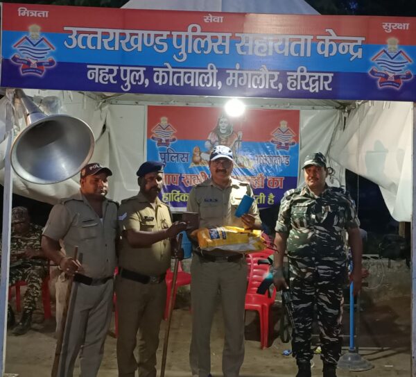 मंगलौर : थाना मंगलौर पुलिस द्वारा कांवड़िया के गुम हुए थैला, सामान, कपड़े,पर्स, मोबाइल फोन को ले जाने की सूचना मालिक को दी गई । आज 30 जुलाई 2024 को अपर उप निरीक्षक नरेंद्र राठी को ड्यूटी के दौरान नहर पुल मंगलौर के पास समय करीब 19:10 बजे एक थैला लावारिस पड़ा हुआ मिला । लावारिस पड़े थैले को उठा कर चेक किया गया तो उसमें एक पर्स, कपड़े, 2 ATM कार्ड व एक मोबाइल फोन आदि सामान मिला ।