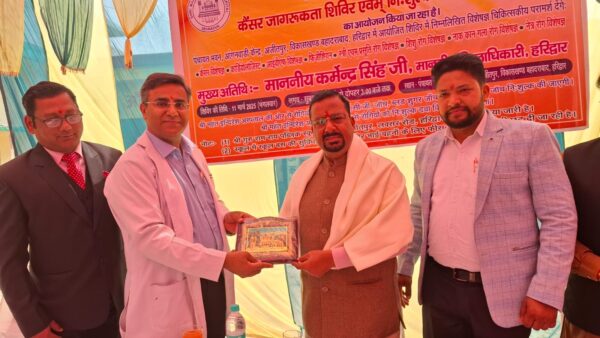 श्री महंत इन्दिरेश अस्पताल के कैंसर सर्जरी विभाग के प्रमुख डाॅ पंकज कुमार गर्ग ने कहा कि कैंसर के प्रति समाज के हर वर्ग में जागरूकता बेहद जरूरी है। कैंसर से डरना नहीं लड़ना है। उन्होंने देश के कई राज्यों सहित उत्तराखण्ड को रेखांकित करते हुए कैंसर रोगियों की बढ़ती संख्या पर गहरी चिंता जाहिर की। उन्होंने कहा कि कैंसर जागरूकता ही कैंसर से सबसे पहला बचाव है। अपने व्याख्यान में उन्होंने कैसर के लक्ष्ण, उपचार, आधुनिक तकनीकों एवं रोकथाम से जुडी महत्वपूर्ण जानकारियों सांझा की। कार्यक्रम में प्रखर कश्यप, ग्राम प्रधान अजीतपुर, डाॅ विशाल गर्ग, प्रदेश कार्यकारिणी सदस्य भाजपा, सोहन वीर पाल, जिला पंचायत सदस्य एवम धर्मेन्द्र चौहान ने भी विचार व्यक्त किए। मंच संचालन सिमरन अग्रवाल ने किया।