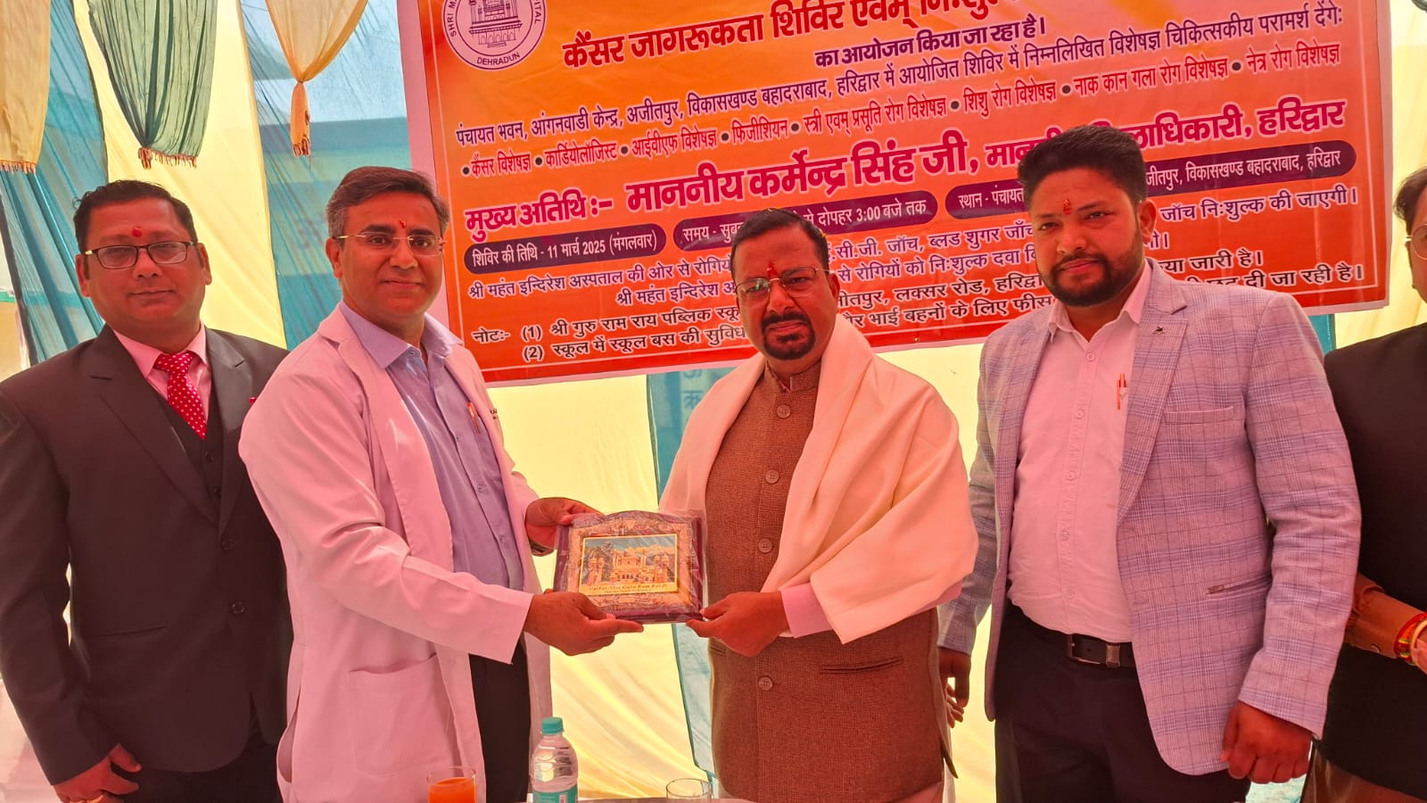 जिलाधिकारी कर्मेन्द्र सिंह ने कहा कि श्री महंत इन्दिरेश अस्पताल, देहरादून की ओर से स्वास्थ्य सेवाओं में बहुत अच्छा कार्य किया जा रहा है। उन्होंने कहा कि श्री महंत इन्दिरेश अस्पताल ने अजीतपुर, हरिद्वार में कैंप आयोजित कर क्षेत्रवासियों को कैंसर जागरूकता के बारे में महत्वपूर्णं जानकारियां सांझा की और आमजन के लिए कैंप लगाया, यह स्वागत योग्य पहल् है। शिविर आयोजित करने के लिए उन्होंने श्री महंत इन्दिरेश अस्पताल प्रबन्धन एवं अस्पताल की पूरी टीम को बधाई दी।