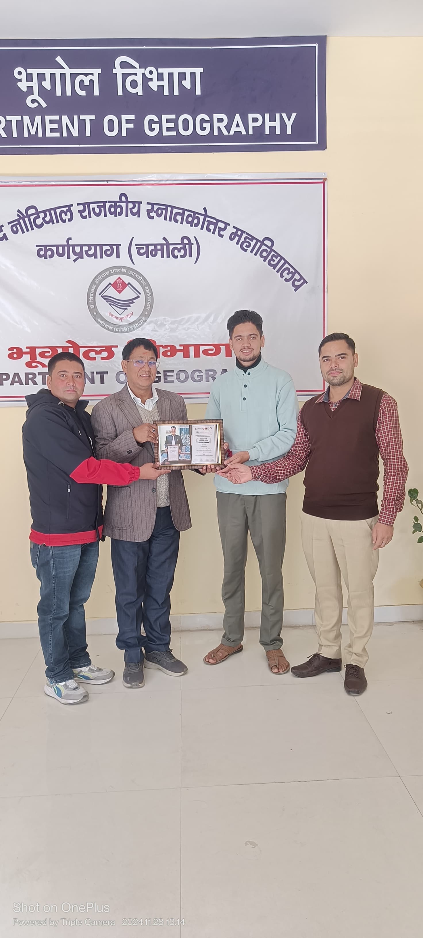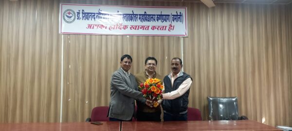 कर्णप्रयाग : उच्च शिक्षा के क्षेत्र में उत्कृष्ट कार्य हेतु टीचर्स ऑफ़ द ईयर 2024 पुरस्कार से सम्मानित डॉक्टर भालचंद्र सिंह नेगी असिस्टेंट प्रोफेसर भूगोल विभाग का डॉक्टर शिवानंद नौटियाल राजकीय स्नातकोत्तर महाविद्यालय कर्णप्रयाग चमोली द्वारा के सभागार में टीचर्स ऑफ़ द ईयर पुरस्कार से सम्मानित प्रोफेसर नेगी का अभिनंदन समारोह आयोजित किया गया। इस अभिनंदन समारोह में महाविद्यालय के समस्त प्राध्यापकों द्वारा डॉक्टर भालचंद्र सिंह नेगी को पुष्प गुच्छ भेंट कर उनका महाविद्यालय में स्वागत एवं अभिनंदन किया गया।
