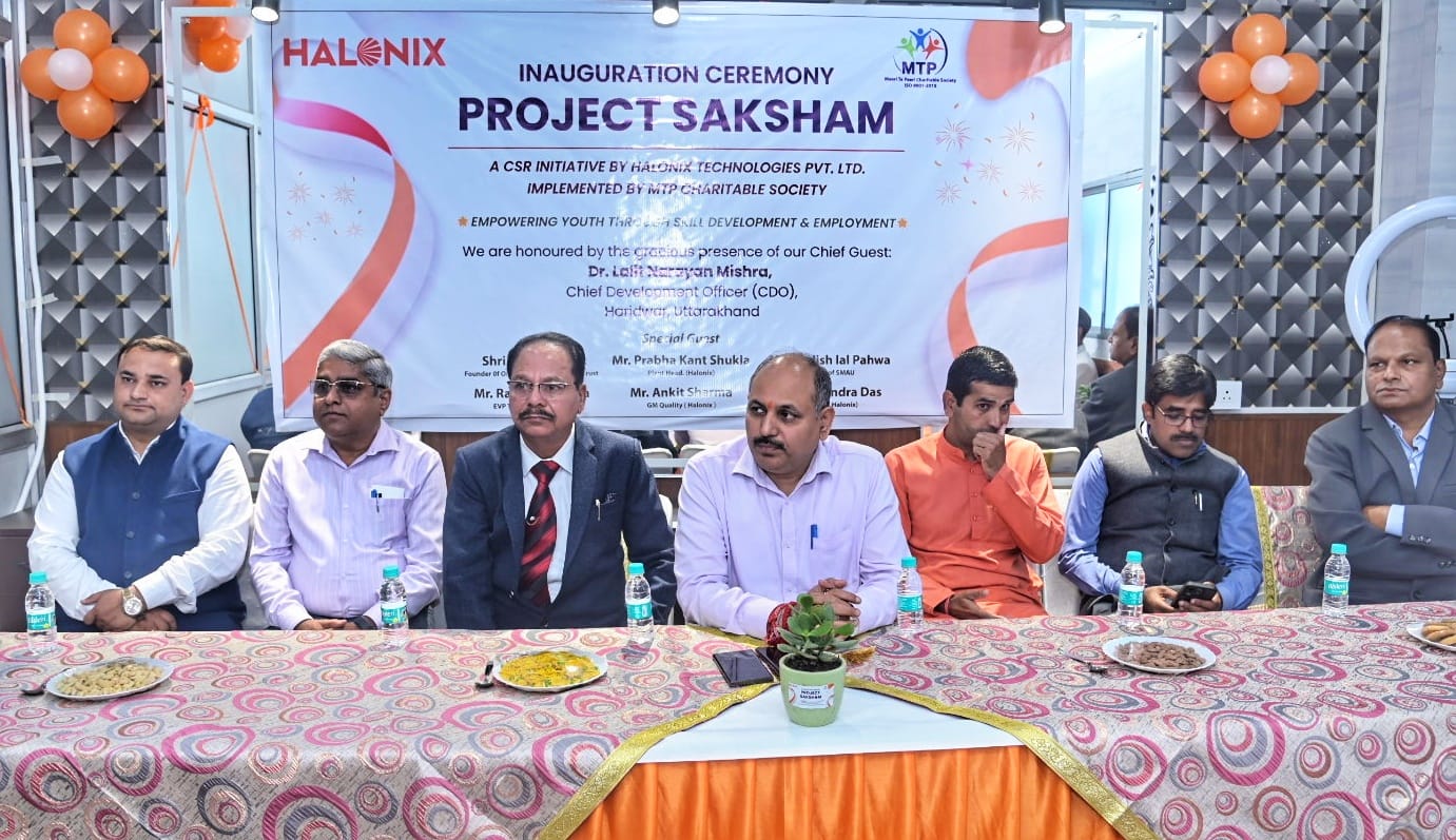 हरिद्वार : हॅलोनिक्स टेक्नोलॉजीज़ प्रा. लि. के कॉर्पोरेट सोशल रिस्पॉन्सिबिलिटी (CSR) के अंतर्गत संचालित “प्रोजेक्ट सक्षम” का ट्रेनिंग सेंटर का आज मुख्य विकास अधिकारी डॉ. ललित नारायण मिश्रा ने रिबन काटकर उद्घाटन किया। मुख्य विकास अधिकारी ने कहा कि ट्रेनिंग सेंटर के खुलने से जनपद हरिद्वार में ही नहीं आस पास के राज्यों में भी रोजगार के नये अवसर बनेंगे, जिससे युवक युवतियां आत्मनिर्भर बन सकेंगे और बेहतर भविष्य की ओर अग्रसर हों सकेंगे।कार्यक्रम के दौरान सभी अतिथियों ने इस सामाजिक पहल की सराहना करते हुए कहा कि यह परियोजना हरिद्वार के युवाओं को कौशल विकास और रोजगार के माध्यम से सशक्त बनाने की दिशा में एक सराहनीय कदम है।