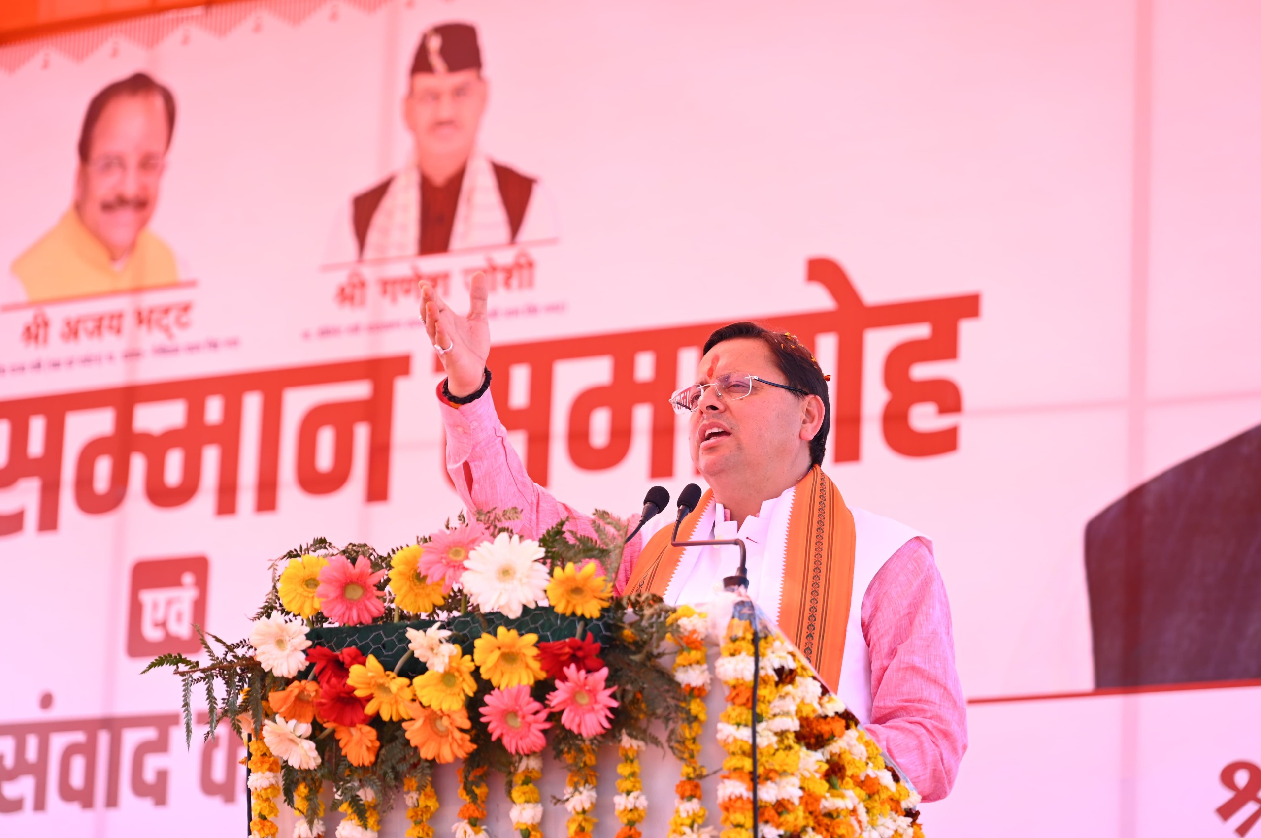 केंद्रीय रक्षा एवं पर्यटन राज्यमंत्री अजय भट्ट ने मुख्यमंत्री का स्वागत करते हुए कहा कि हमारे राज्य को मुख्यमंत्री ने यूसीसी लागू कर के विश्व स्तर पर बहुत आगे पहुंचा दिया है। उन्होंने मुख्यमंत्री को बधाई व शुभकामनाएं दीं। उन्होंने कहा कि यूसीसी लागू होने से समाज के हर वर्ग को मजबूती मिली है खासकर महिलाओं को इसके पूरा श्रेय प्रदेश के यशस्वी मुख्यमंत्री धामी को जाता है। उन्होंने महिलाओं को बधाई देते हुए कहा कि देश के प्रधानमंत्री नरेन्द्र मोदी ने महिलाओं को हर क्षेत्र में सशक्त बनाने के लिए नारी शक्ति वन्दन योजना विधेयक पास करा लिया है, इसके लिए उन्होंने प्रधानमंत्री का धन्यवाद ज्ञापित किया। उन्होंने कहा कि आज हमारा देश मोदी जी के नेतृत्व में एक तरफ चन्द्रमा के उस स्थान तक पहुंच गया है जहां संसार में कोई नहीं पहुंच सका वहीं दूसरी तरफ एल 1 सूर्य के चक्कर लगा रहा है। उन्होंने कहा कि मोदी जी के शासन में हमारा देश विज्ञान के साथ-साथ अध्यात्म और संस्कृति में भी तेजी से आगे बढ़ रहा है, जहाँ एक और धार्मिक स्थलों का सौंदर्यीकरण तेजी से हो रहा है वहीं दूसरी ओर हमारी संस्कृति विश्व पटल पर तेजी से बढ़ रही है।