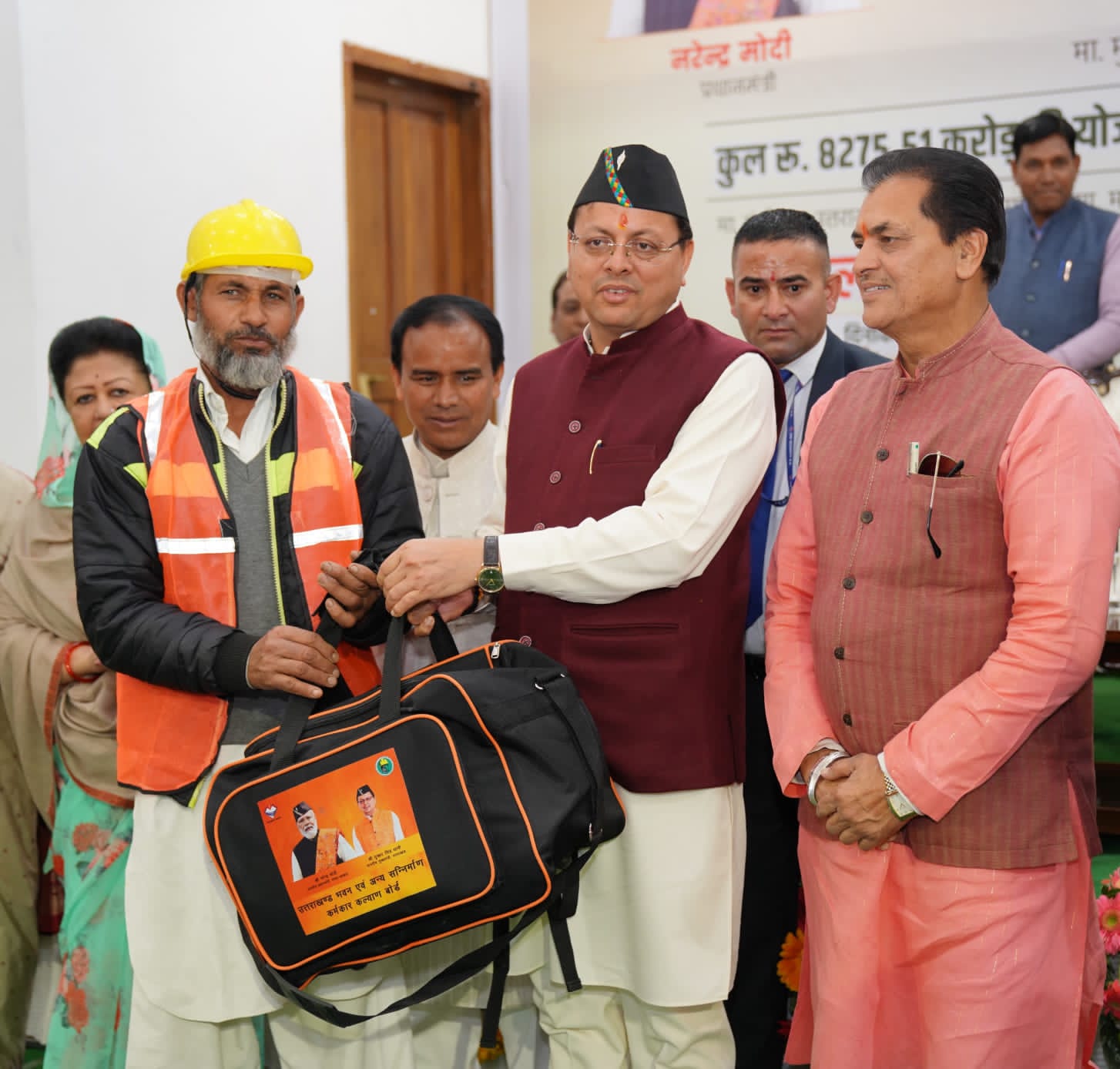 देहरादून : मुख्यमंत्री पुष्कर सिंह धामी ने रविवार को मुख्यमंत्री आवास स्थित मुख्य सेवक सदन में 17 विभागों की 8275.51 करोड़ की 122 विभिन्न योजनाओं का डिजिटल माध्यम से लोकार्पण एवं शिलान्यास किया। इसमें 11 विभागों की 1048.15 करोड़ की योजनाओं का लोकार्पण एवं 15 विभागों की 7227.36 करोड़ की विभिन्न योजनाओं का शिलान्यास शामिल है। इस अवसर पर मुख्यमंत्री ने ऊर्जा विभाग की 2027 करोड़ की प्रिपेड मीटर योजना का भी शिलान्यास किया। मुख्यमंत्री ने भवन एवं अन्य सन्निर्माण कर्मकार कल्याण बोर्ड के माध्यम से पंजीकृत श्रमिकों को टूल किट का भी वितरण किया। कार्यक्रम में मुख्यमंत्री को सचिव ऊर्जा एवं एमडी पिटकुल पी.सी. ध्यानी द्वारा 05 करोड़ का लाभांश का चेक भी प्रदान किया गया। कार्यक्रम में मुख्यमंत्री ने विभिन्न उद्यमियों को सौर ऊर्जा परियोजनाओं के आवंटन पत्र के साथ ही मुख्यमंत्री सौर स्वरोजगार योजना के व्यक्तिगत लाभार्थियों के आवंटन पत्र भी प्रदान किये।