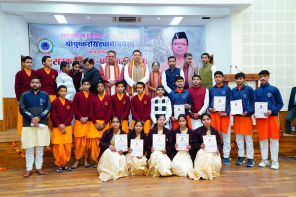 मुख्यमंत्री ने कहा कि प्रधानमंत्री नरेंद्र मोदी के नेतृत्व में भारत अपनी प्राचीन मौलिक विरासत और संस्कृति के उत्थान के तौर से गुजर रहा है। भारत के प्राचीन वैभव और गौरव को प्रदर्शित करने वाली पहचान और प्रतीकों का संरक्षण और संवर्धन हो रहा है। उत्तराखंड भी हर दिशा में नवाचार के दौर से गुजर रहा है। उत्तराखंड में स्थानीय स्तर पर लिए जाने वाले निर्णय राष्ट्रीय स्तर पर भी मार्गदर्शन का कार्य कर रहे हैं। विकास के नित नए आयाम स्थापित किया जा रहे हैं। कहा कि उत्तराखंड के प्रवासी भी गौरवान्वित महसूस कर रहे हैं कि उनके पूर्वजों की देवभूमि तेजी से उन्नति के दौर से गुजर रही है। कार्यक्रम में कैबिनेट मंत्री गणेश जोशी, विधायक सरिता कपूर, सचिव संस्कृत शिक्षा दीपक कुमार गैरोला, निदेशक संस्कृत शिक्षा आनंद भारद्वाज आदि उपस्थित थे।
