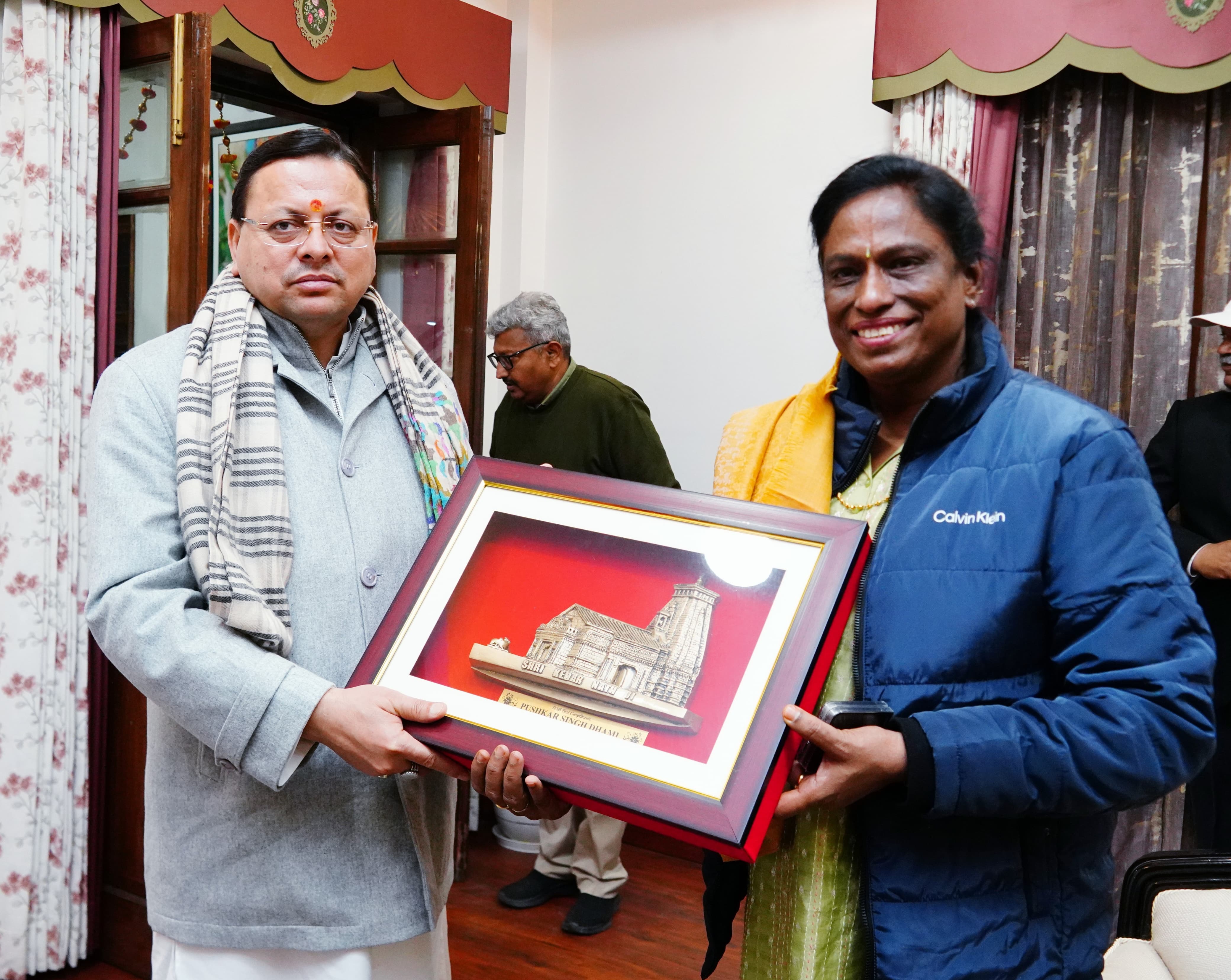 मुख्यमंत्री पुष्कर सिंह धामी से खेल राज्यमंत्री रक्षा खडसे, भारतीय ओलंपिक संघ की अध्यक्ष डॉ. पी टी उषा एवं चेयरमैन जीटीसीसी सुनैना प्रकाश ने की शिष्टाचार भेंट