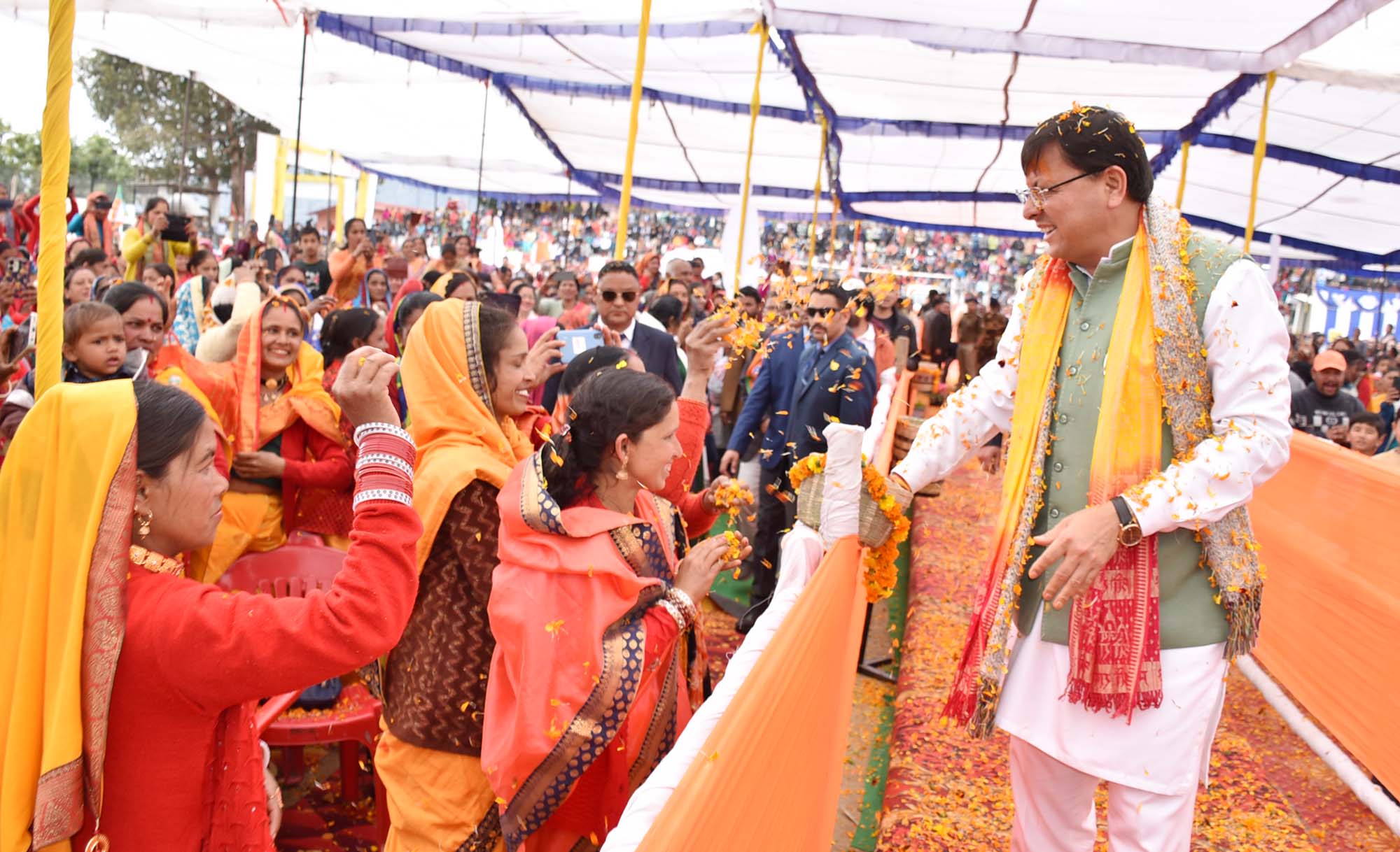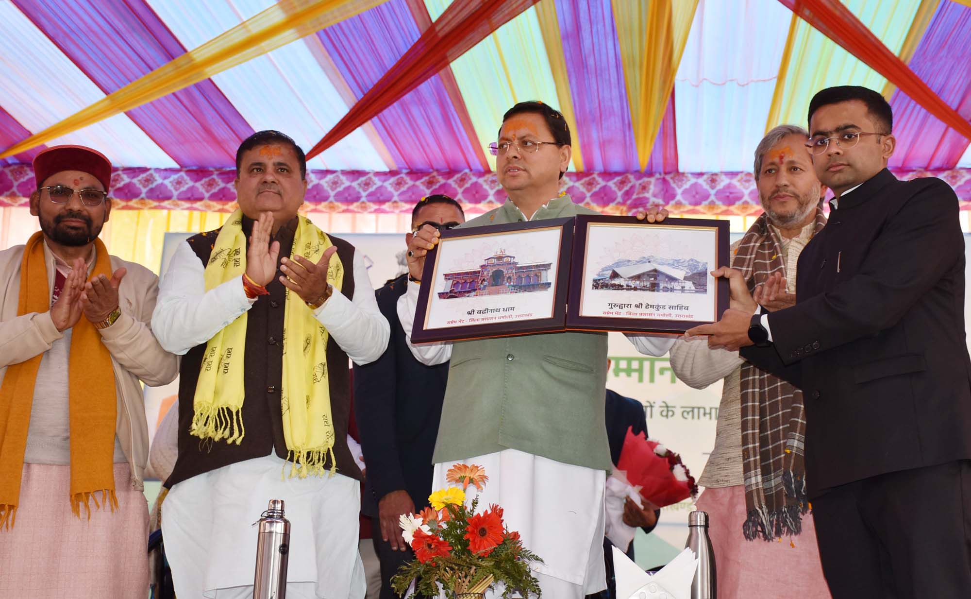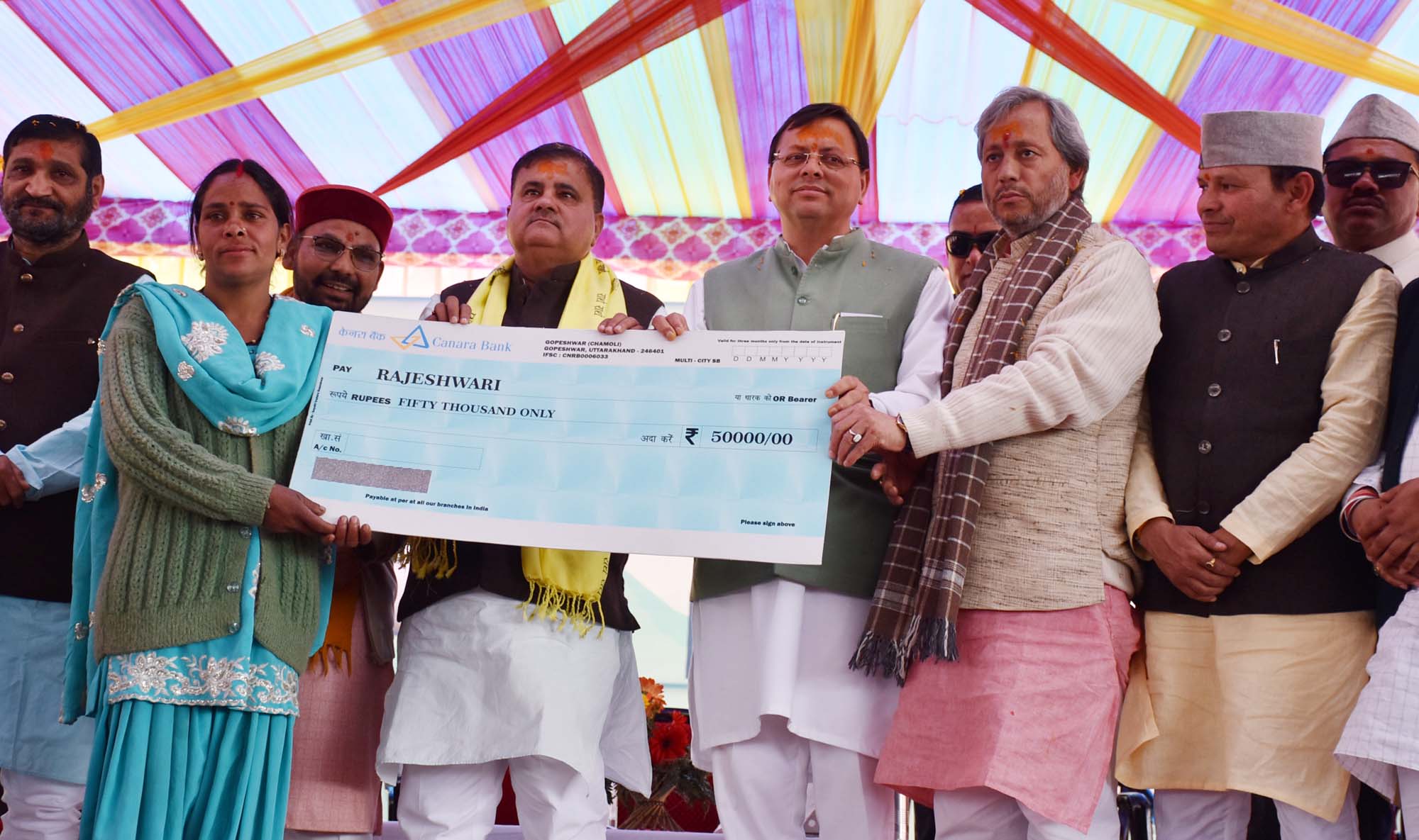 गोपेश्वर : मुख्यमंत्री पुष्कर सिंह धामी ने बुधवार को जनपद चमोली के पुलिस मैदान गोपेश्वर में आयोजित ‘‘लाभार्थी सम्मान समारोह’’ में प्रतिभाग करते हुए ₹ 229.3 करोड़ की विभिन्न विकास योजनाओं का लोकापर्ण एवं शिलान्यास किया। जिसमें 44.13 करोड़ की योजनाओं का लोकापर्ण एवं 185.17 करोड़ की योजनाओं का शिलान्यास शामिल है। इस दौरान मुख्यमंत्री ने जनपद के विकास के लिए कई घोषणाएं भी की जिसमें हापला-धोतीधार मोटर मार्ग निर्माण कार्य को शीघ्र पूरा किए जाने, दशोली ब्लाक में गोपेश्वर मंदिर मार्ग से बैतरणी – सिरखोमा- सेंटुणा – बैरागणा मोटर मार्ग के किलोमीटर एक से लेकर सेटुणा तक मोटर मार्ग का निर्माण हेतु शासकीय एवं वित्तीय स्वीकृति प्रदान की जाने, कर्णप्रयाग में लामबगड के अंतर्गत गंगानगर माई मंदिर से भैरव तोक तक रामगंगा नदी पर झूला पुल का निर्माण किए जाने, थराली विधानसभा में चार विकास खंडों में गौ-संरक्षण सेवा की स्थापना किए जाने एवं थराली कुलसारी में सेंटर ऑफ एक्सीलेंस की जनहित में स्वीकृति दी जाने की घोषणा शामिल है।
