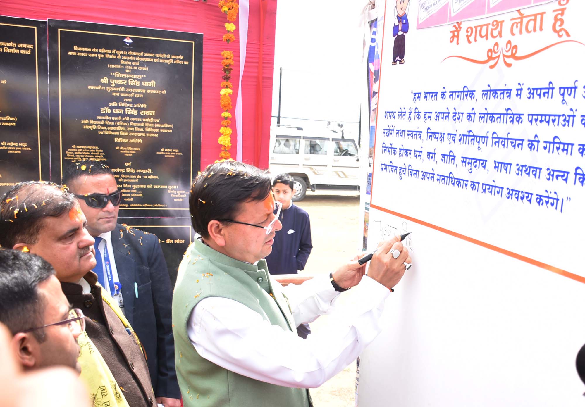 मुख्यमंत्री ने कहा कि आज सरकार द्वारा केवल फैसले ही नहीं लिए जा रहे है, बल्कि सभी योजनाओं को धरातल पर भी उतारा जा रहा है। सरकार द्वारा जिन योजनाओं का शिलान्यास किया जा रहा है समयावधि के भीतर उन योजनाओं को पूर्ण कर लोकार्पण भी किया जा रहा है। मुख्यमंत्री ने कहा कि हमारा हमेशा से ये लक्ष्य रहा है कि उत्तराखण्ड का सर्वांगीण विकास हो और उत्तराखंड प्रगति के पथ पर तेजी से आगे बढ़े। मुख्यमंत्री ने कहा कि उत्तराखंड को विकसित राज्य बनाने का जो ’’विकल्प रहित संकल्प’’ हमने लिया है। उत्तराखंड की देवतुल्य जनता के विश्वास और सहयोग से हम निश्चित रूप से सफल होंगे।
