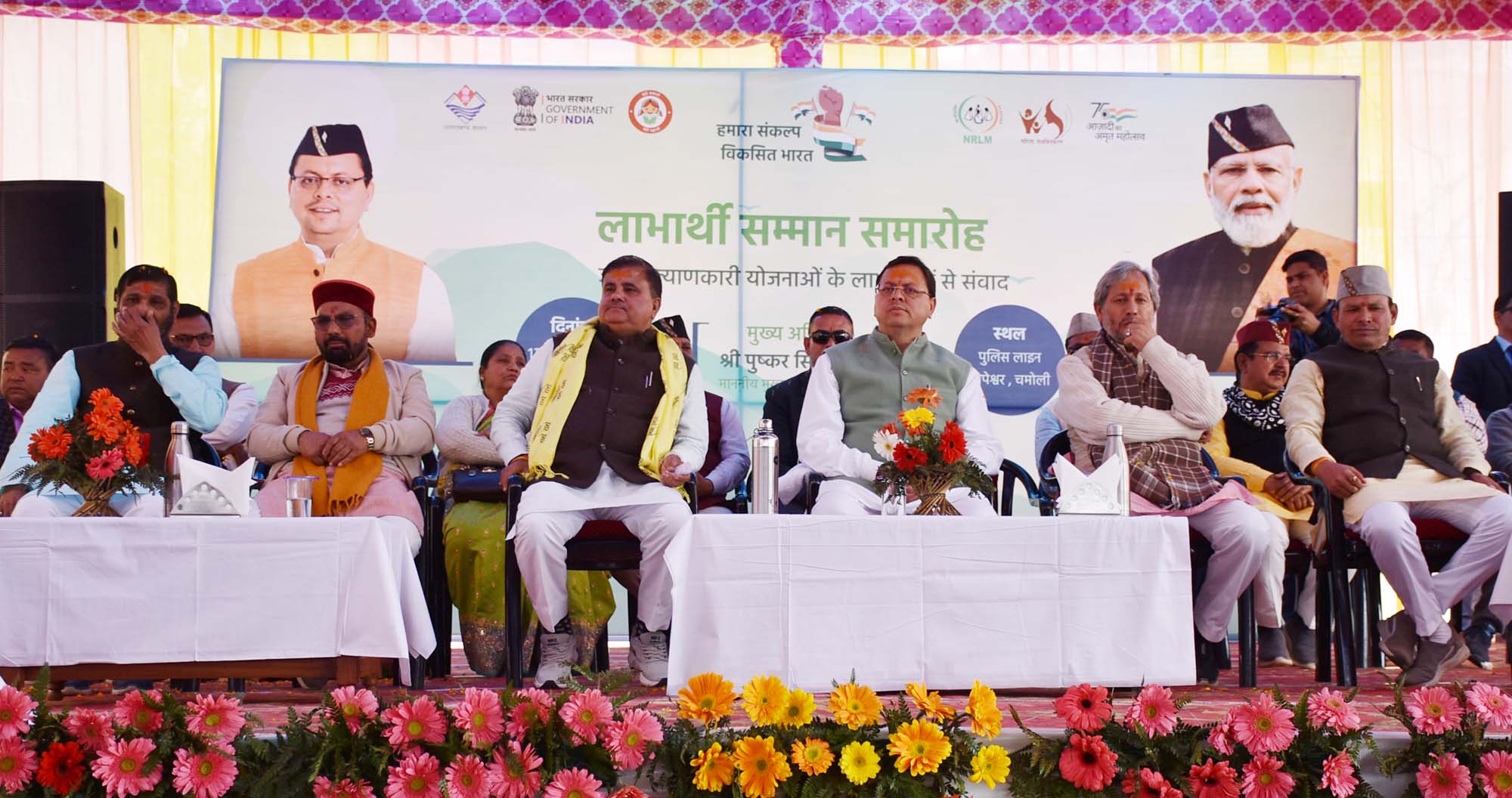 मुख्यमंत्री ने कहा कि राज्य सरकार समाज के सभी वर्गाे के हित में लगातार कार्य कर रही हैं। प्रधानमंत्री नरेन्द्र मोदी के मार्गदर्शन में हम उत्तराखंड के अंतिम छोर पर खडे़ व्यक्ति को विकास की मुख्यधारा से जोड़ने के लिए दिनरात प्रयासरत हैं। केंद्र और राज्य सरकार की विभिन्न जन कल्याणकारी योजनाओं के माध्यम से हमारे नागरिक अनेक तरह से लाभान्वित हुए हैं और पिछले 10 वर्षाे में देश का ऐसा कोई भी नागरिक ऐसा नही होगा जो किसी न किसी योजना से लाभान्वित न हुआ हो। उन्होंने कहा कि प्रधानमंत्री नरेन्द्र मोदी के नेतृत्व में लगभग 4 करोड़ लोगों को आवास योजना का लाभ दिया जा चुका है। 80 करोड़ से अधिक लोगों को राशन उपलब्ध कराया जा रहा है। 10 करोड़ से अधिक उज्जवला गैस कनेक्शन दिए हैं। उन्होंने कहा कि 370 हटाने से लेकर सेना के आधुनिकीकरण, सीमाओं की सुरक्षा, हथियार निर्यातकों के रूप में पहचान बनाते जा रहे हैं। प्रधानमंत्री जी की प्रेरणा से सबका साथ, सबका विकास तथा एक राष्ट्र, एक विधान को साकार किया है। प्रधानमंत्री जी के ही प्रयासों से आज हमारे प्रवासी नागरिक भी गर्व महसूस करते हैं।