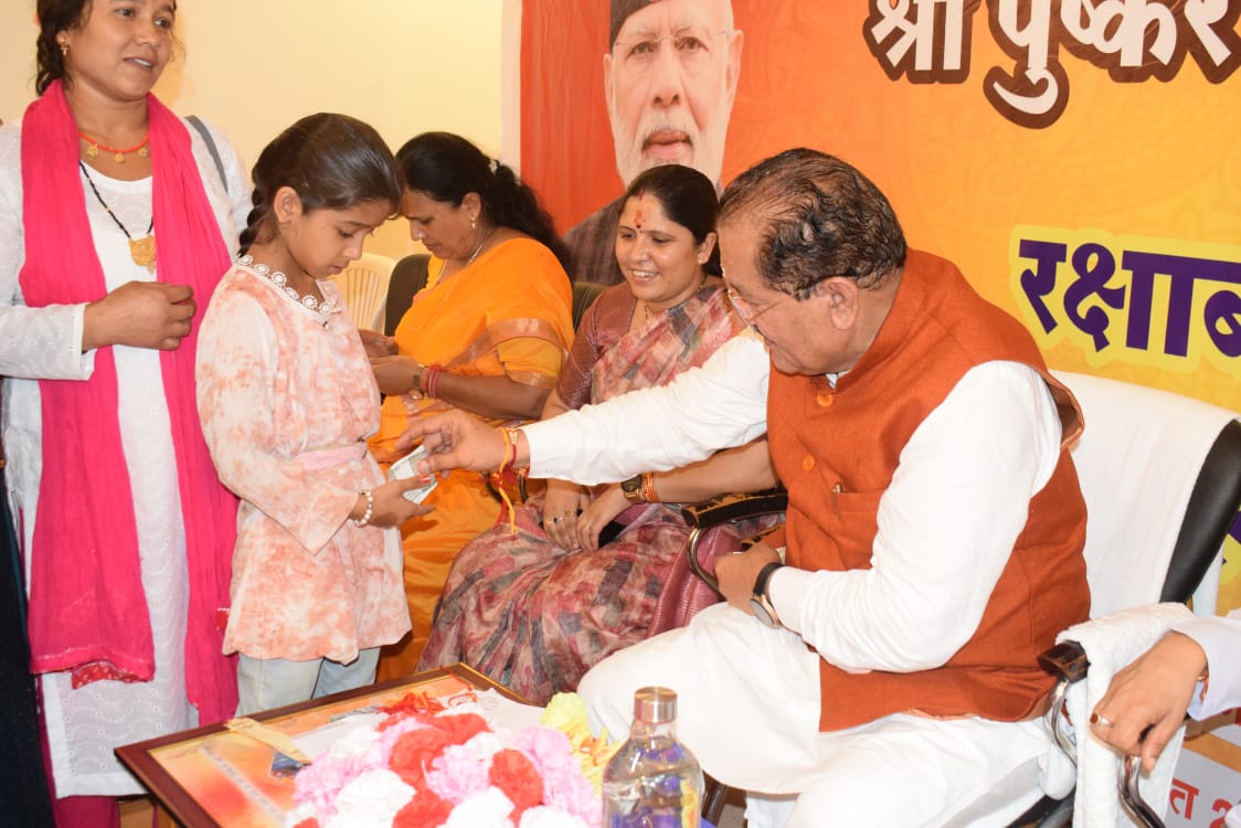 विधायक के हाथों में रक्षा सूत्र बांधकर मुख्यमंत्री को राखियाँ प्रेषित की