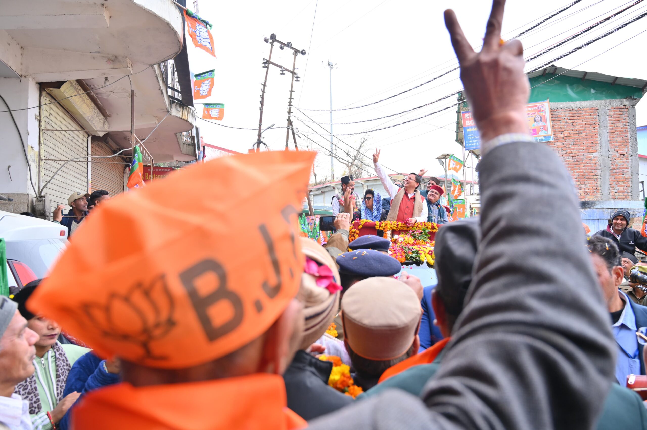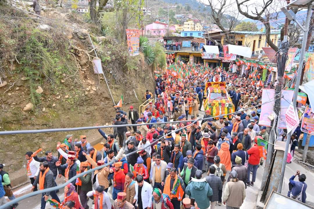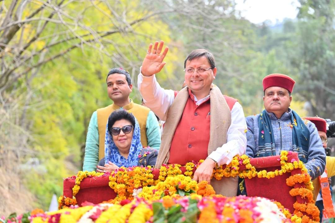 देहरादून : मुख्यमंत्री पुष्कर सिंह धामी ने मंगलवार को बड़कोट, उत्तरकाशी में मुख्य बाजार, बड़कोट से रामलीला मैदान तक आयोजित रोड शो में प्रतिभाग किया। इस दौरान हजारों की संख्या में मौजूद महिलाओं, क्षेत्रीय जनता ने मुख्यमंत्री का पुष्प वर्षा कर स्वागत किया। रंवाई क्षेत्र की जनता के भव्य स्वागत से मुख्यमंत्री अभिभूत नज़र आए। मुख्यमंत्री ने भी लोगों पर पुष्प वर्षा कर उनका अभिनंदन किया। इस अवसर पर भाजपा प्रदेश अध्यक्ष महेंद्र भट्ट, सांसद माला राज्य लक्ष्मी शाह, भाजपा जिला अध्यक्ष सतेंद्र राणा, विधायक दुर्गेश्वर लाल, विधायक सुरेश चौहान, विधायक संजय डोभाल, मीडिया प्रभारी भाजपा मनवीर चौहान एवं अन्य लोग मौजूद रहे।