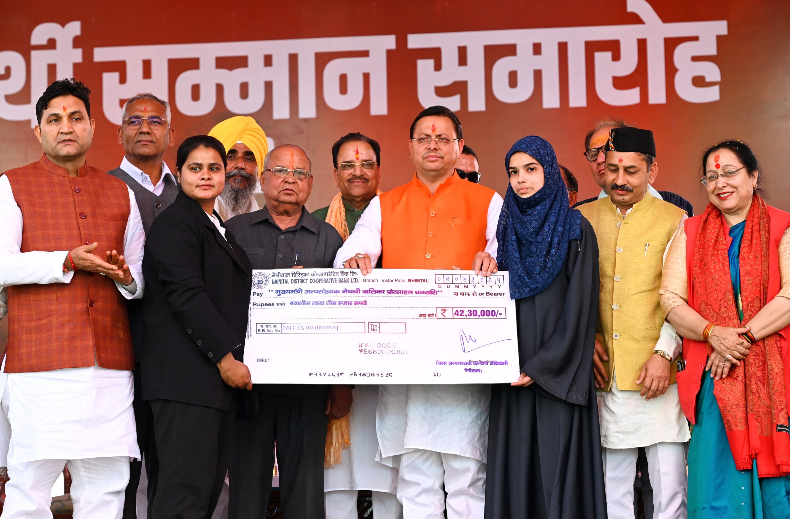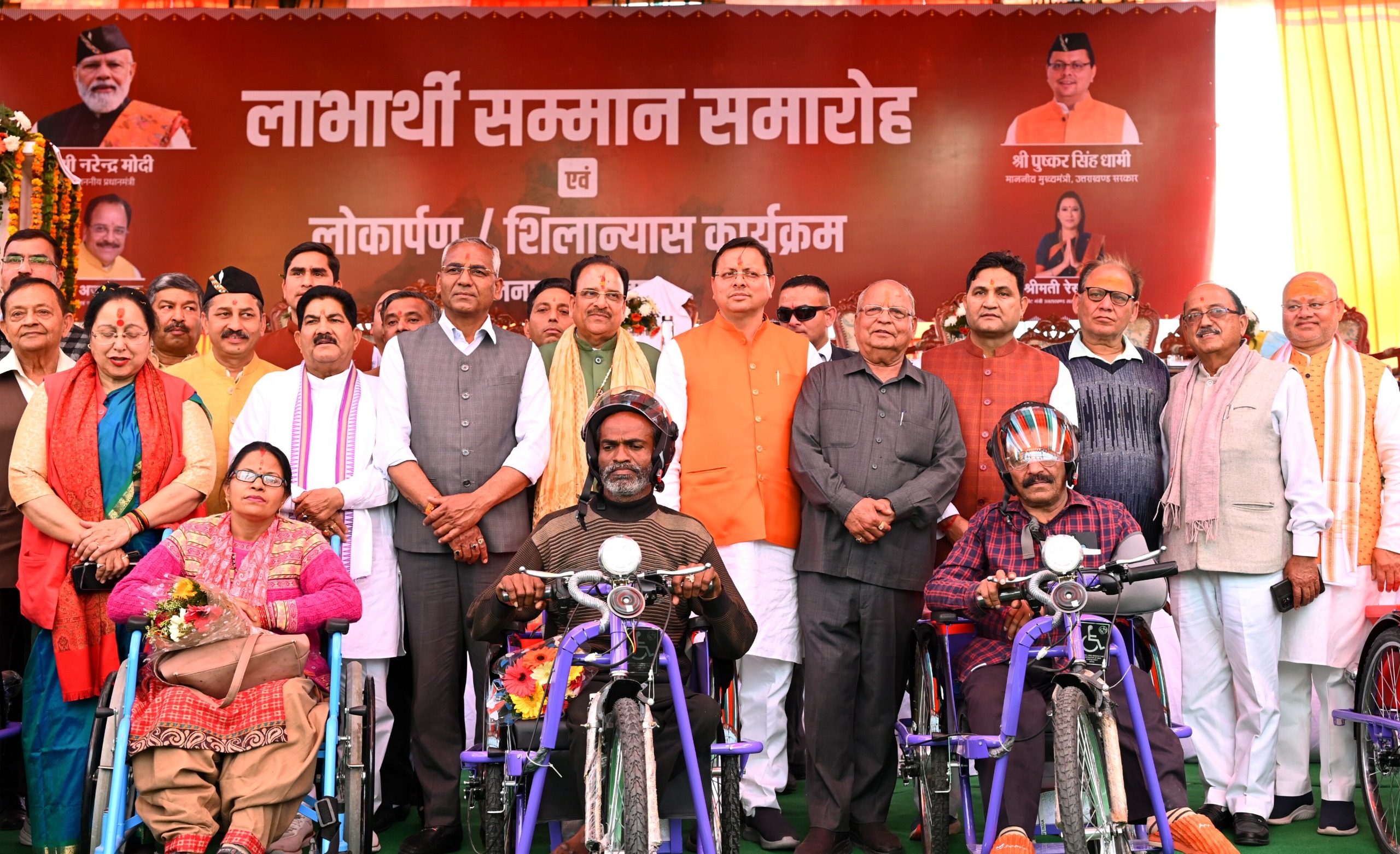 मुख्यमंत्री ने कहा कि हल्द्वानी में रोडवेज बस टर्मिनल, आरटीओ कार्यालय, ड्राइविंग सेंटर सहित यह निर्माण कार्य कई साल पहले तैयार हो जाने चाहिए थे, लेकिन सरकार द्वारा तमाम ऐसे कार्य किये जा रहे हैं, जो पूर्व की सरकारों ने इच्छाशक्ति की कमी के कारण नहीं हो पाये।इस अवसर पर मुख्यमंत्री द्वारा प्रधानमंत्री आवास योजना के 10 लाभार्थियों को चेक प्रदान किये गये। साथ ही राष्ट्रीय ग्रामीण आजीविका मिशन के अन्तर्गत लखपति दीदी योजना के अन्तर्गत 10 स्वयं सेवी संस्थाओं को 4 करोड़ 6 लाख 50 हजार के चेक प्रदान किये गये। कार्यक्रम में मुख्यमंत्री अल्पसंख्यक मेधावी बालिका प्रोत्साहन योजना के तहत जनपद की 40 बालिकाओं 10-10 हजार के चेक दिये गये। समाज कल्याण विभाग द्वारा 7 दिव्यांगजनों को मोटराइज्ड ट्राई साइकिल तथा 10 दिव्यांगजनों को व्हील चेयर दी गई। कृषि विभाग के 25 कृषको को सम्मानित किया गया। बनभूलपुरा घटना में पत्रकारों के दोपहिया वाहन क्षतिग्रस्त होने पर मुख्यमंत्री विवेकाधीन राहत कोष से 10 लाख का चेक प्रदान किया। इस अवसर पर ईजा बैंणी महोत्सव पर आधारित वीडियो भी मुख्यमंत्री द्वारा लांच की गई।
