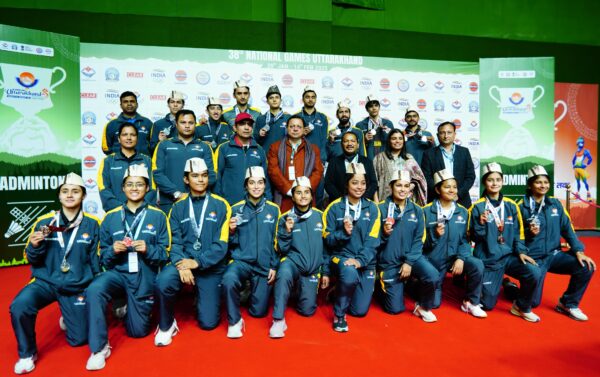 देहरादून : मुख्यमंत्री पुष्कर सिंह धामी ने मंगलवार को परेड ग्राउण्ड, देहरादून में 38वें राष्ट्रीय खेल-2025 के अन्तर्गत आयोजित बैडमिंटन प्रतियोगिता का अवलोकन किया। इस अवसर पर मुख्यमंत्री ने विजेता खिलाडियों को मेडल पहनाकर सम्मानित किया। मुख्यमंत्री ने विभिन्न राज्यों से आए खिलाड़ियों से मुलाकात कर उनका उत्साहवर्धन भी किया। 38वें राष्ट्रीय खेल के अंतर्गत उत्तराखंड के सूर्यांश रावत एवं तमिल नाडु के सतीश कुमार के बीच मेन्स सिंगल बैडमिंटन प्रतियोगिता का फाइनल मैच खेला गया। जिसमें 21/21 , 21/17 से तमिलनाडु के सतीश कुमार ने विजय प्राप्त की। मुख्यमंत्री ने मेन्स सिंगल बैडमिंटन प्रतियोगिता के विजेता तमिलनाडु के सतीश कुमार को गोल्ड, दूसरे स्थान पर आए उत्तराखंड के सूर्यांश रावत को सिल्वर मेडल पहनाकर सम्मानित भी किया।