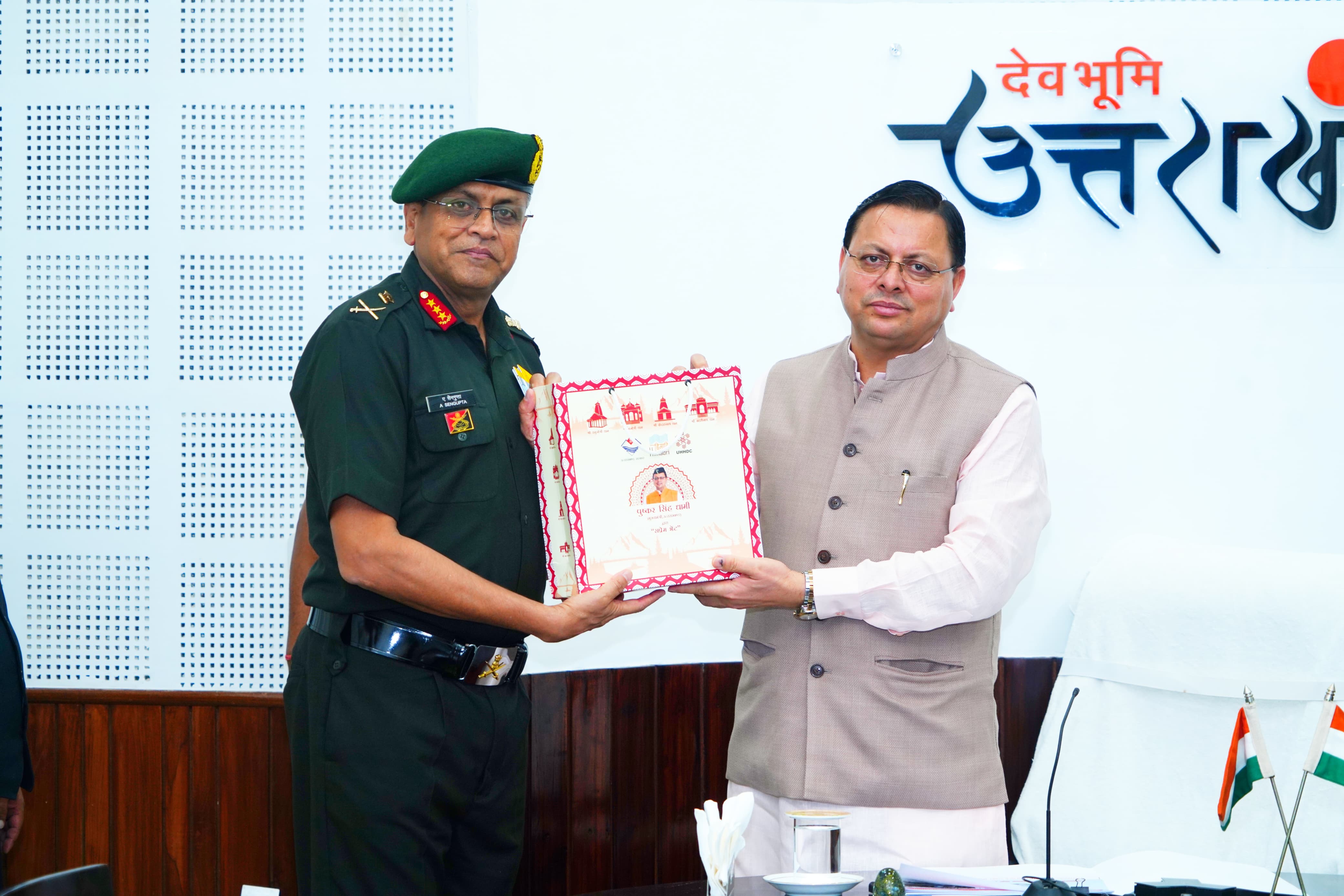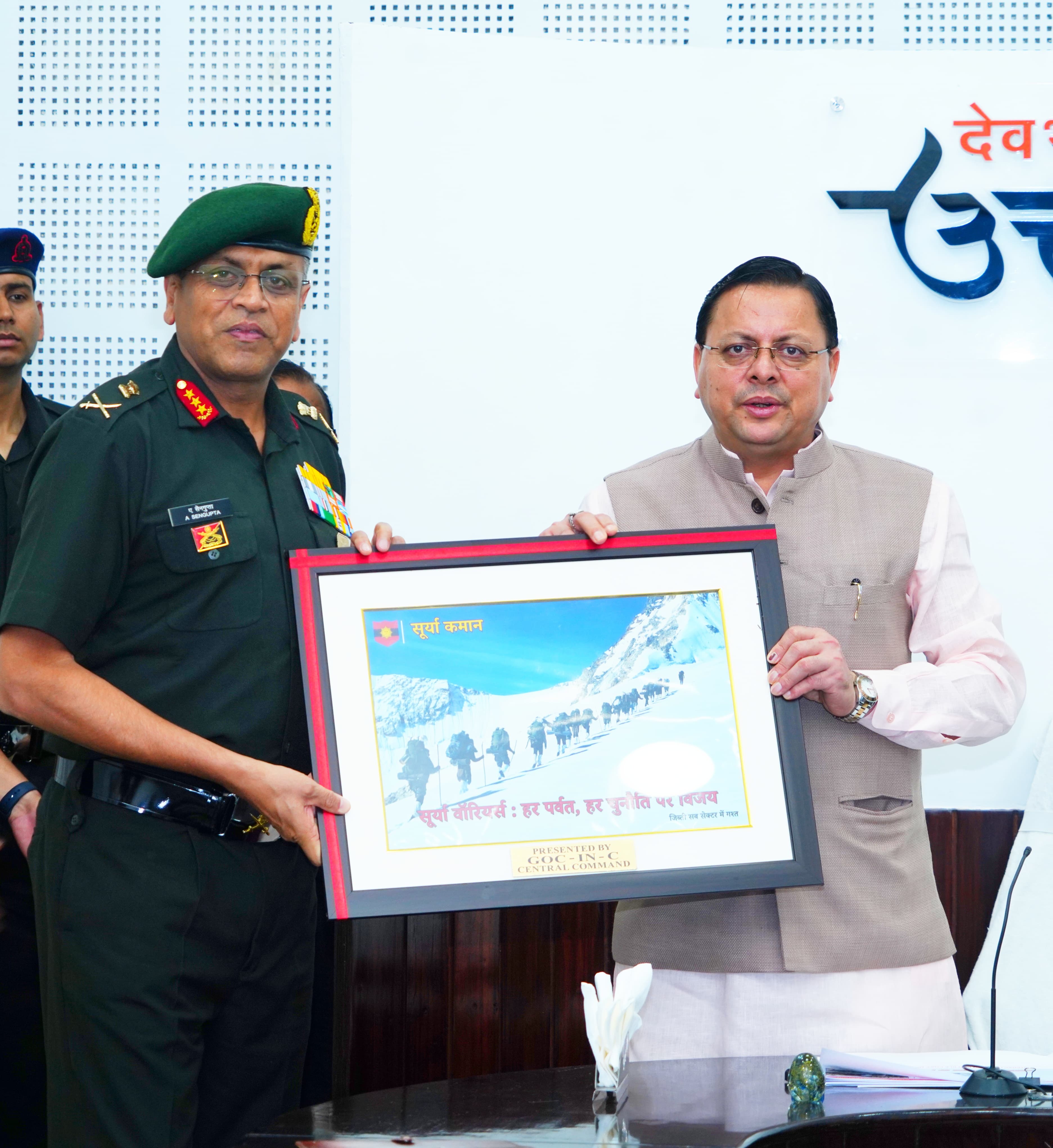 देहरादून : मुख्यमंत्री पुष्कर सिंह धामी से शुक्रवार को मुख्यमंत्री कैंप कार्यालय में भारतीय सेना की मध्य कमान के जनरल ऑफिसर कमांडिंग-इन-चीफ लेफ्टिनेंट जनरल अनिंद्य सेनगुप्ता (UYSM, AVSM, YSM) ने शिष्टाचार भेंट की। इस दौरान राज्य के सीमावर्ती क्षेत्रों में सैन्य एवं नागरिक प्रशासन के बीच बेहतर समन्वय स्थापित करने को लेकर विचार-विमर्श हुआ।