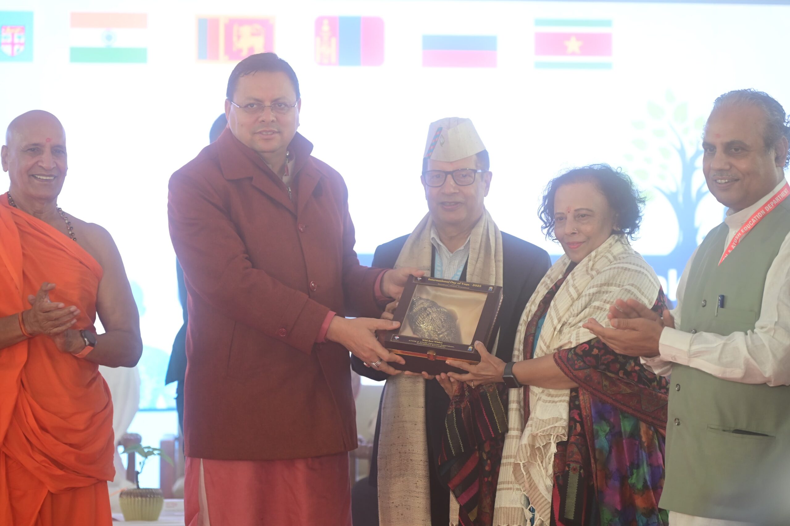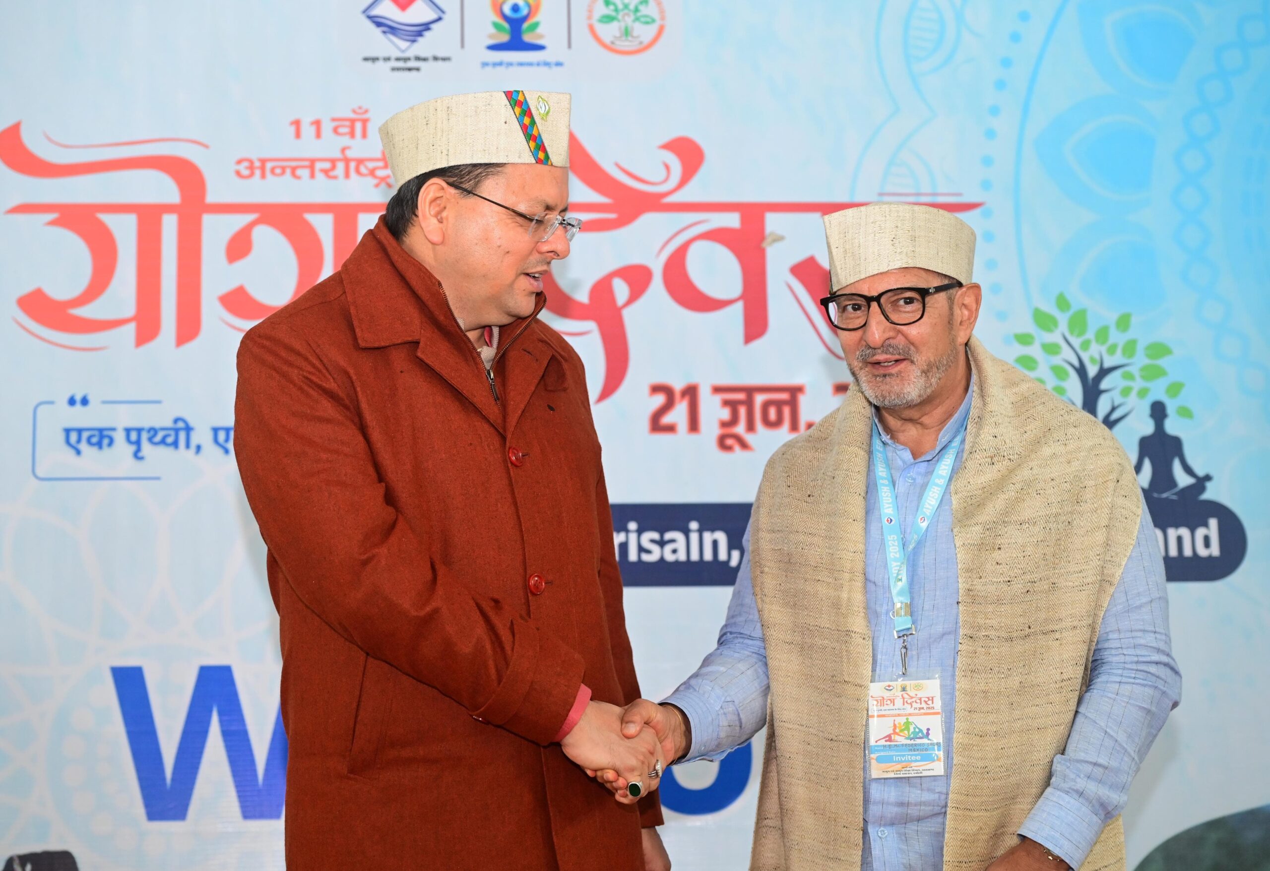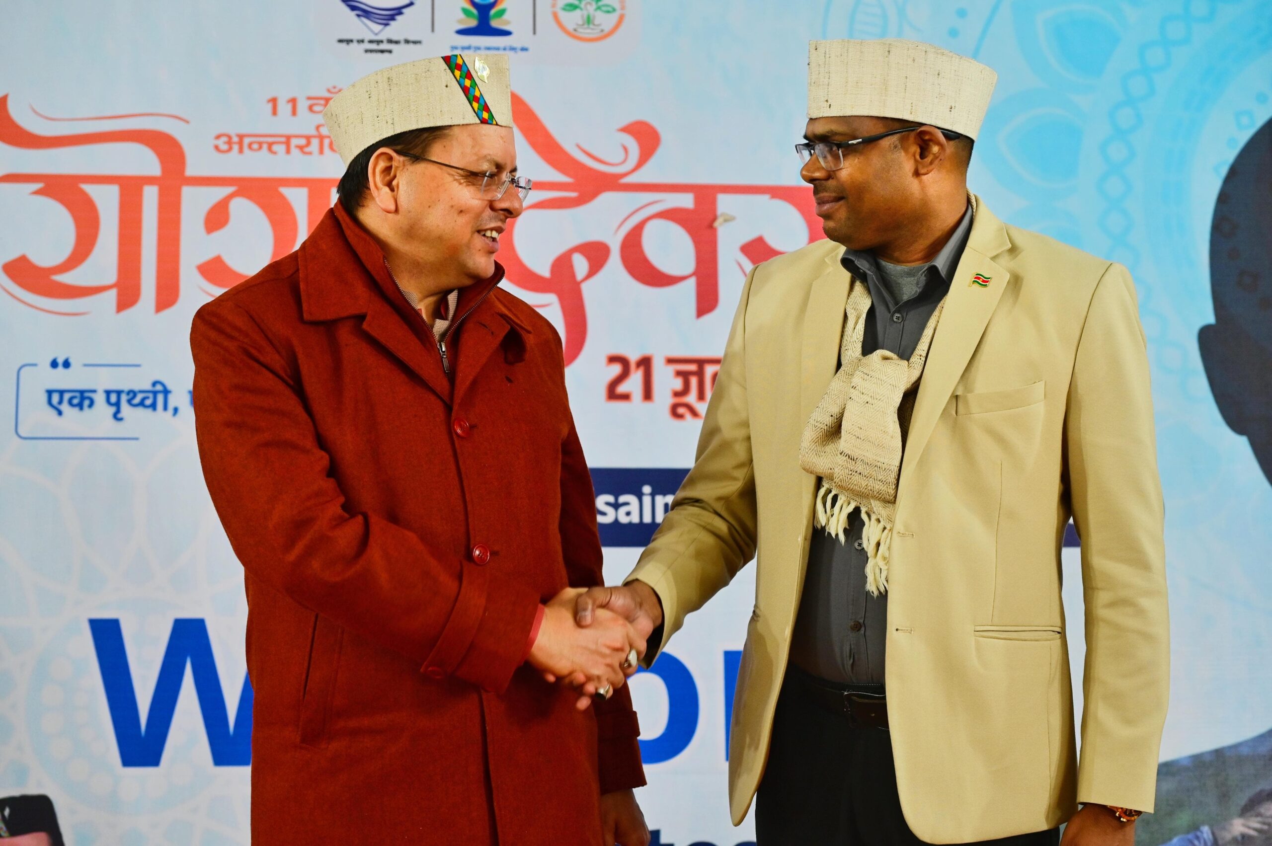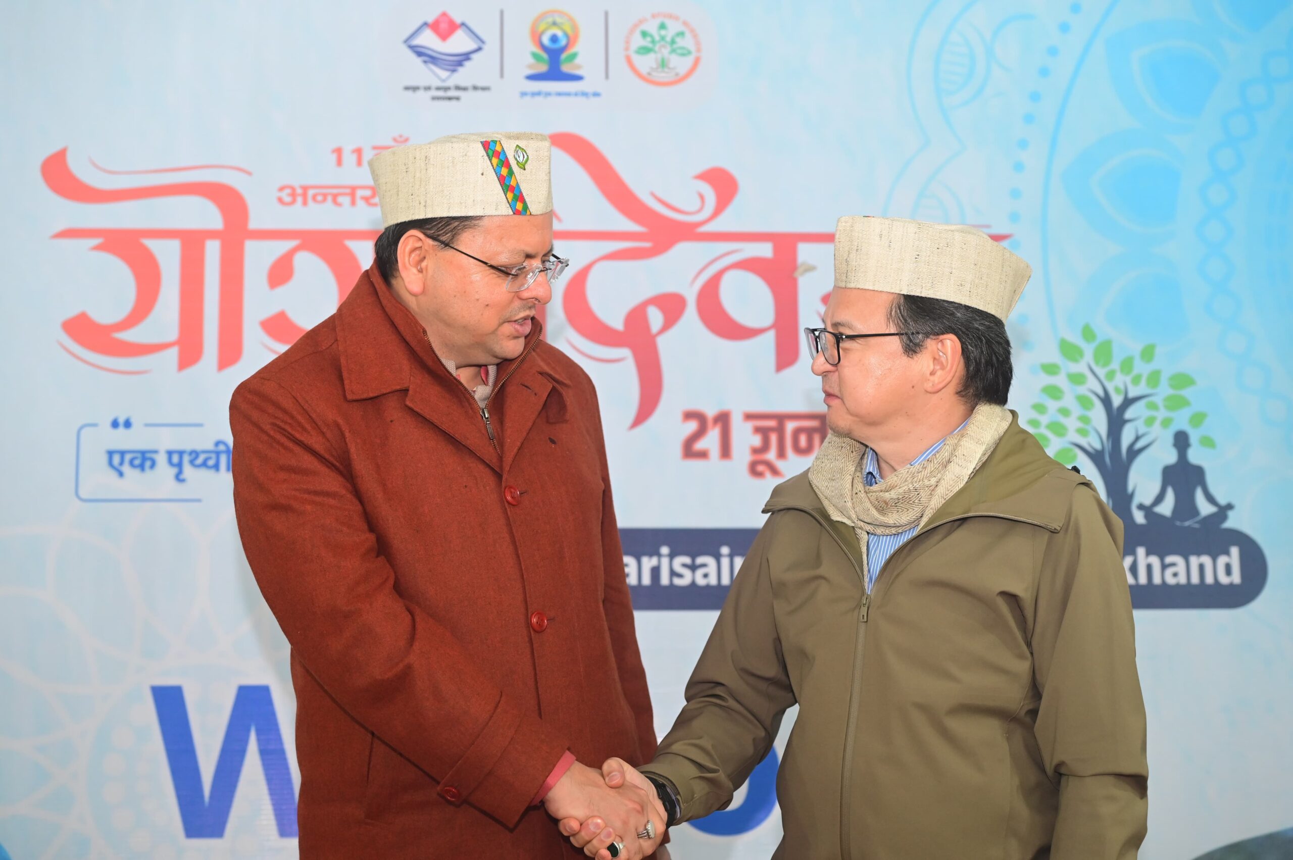 मुख्यमंत्री पुष्कर सिंह धामी ने मेक्सिको, फिजी, नेपाल, सूरीनाम, मंगोलिया, लातविया, श्रीलंका और रूस के उपस्थित राजदूत व अन्य उच्चधिकारियों का स्वागत करते हुए कहा कि देवभूमि उत्तराखंड योग और आयुष की वैश्विक राजधानी है। प्रधानमंत्री नरेद्र मोदी के नेतृत्व और आग्रह पर पूरी दुनिया में अंतर्राष्ट्रीय योग दिवस मनाया जाता है। 2014 में प्रधानमंत्री जी के आग्रह पर संयुक्त राष्ट्र संघ में 177 से ज्यादा देशों ने अंतर्राष्ट्रीय योग दिवस को मान्यता दी।