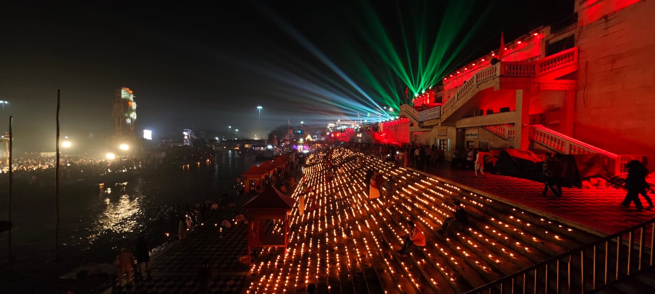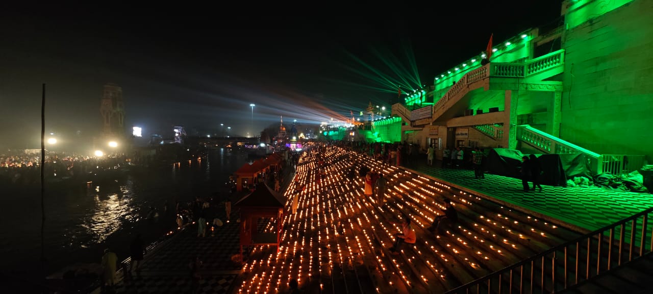 - मां गंगा के घाटों में 3 लाख 51 हजार दीप प्रज्वलित किए गए