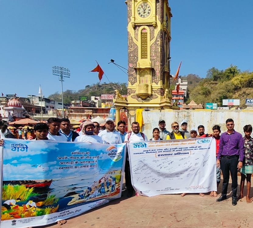 हरिद्वार : राष्ट्रीय स्वच्छ गंगा मिशन नई दिल्ली के निर्देशानुसार आज 16 मार्च 2024 को जिला गंगा समिति हरिद्वार के तत्वावधान में गंगा स्वच्छता पखवाड़ा के अंतर्गत हरकी पैड़ी पर स्वच्छता अभियान चलाया गया। इस दौरान नुक्कड नाटक, स्वच्छता एवं श्रमदान एवं गंगा स्वच्छता की शपथ दिलाकर सभी को हस्ताक्षर अभियान के माध्यम से गंगा को स्वच्छ रखने हेतु संकल्प लिया। जिला गंगा समिति के सदस्य रामेश्वर गौड़ ने इस अभियान में बढ़ चढ़कर भागीदारी करने का आवाहन किया एवं आगे भी अभियान चलाकर गंगा को स्वच्छ रखने को प्रेरित किया।