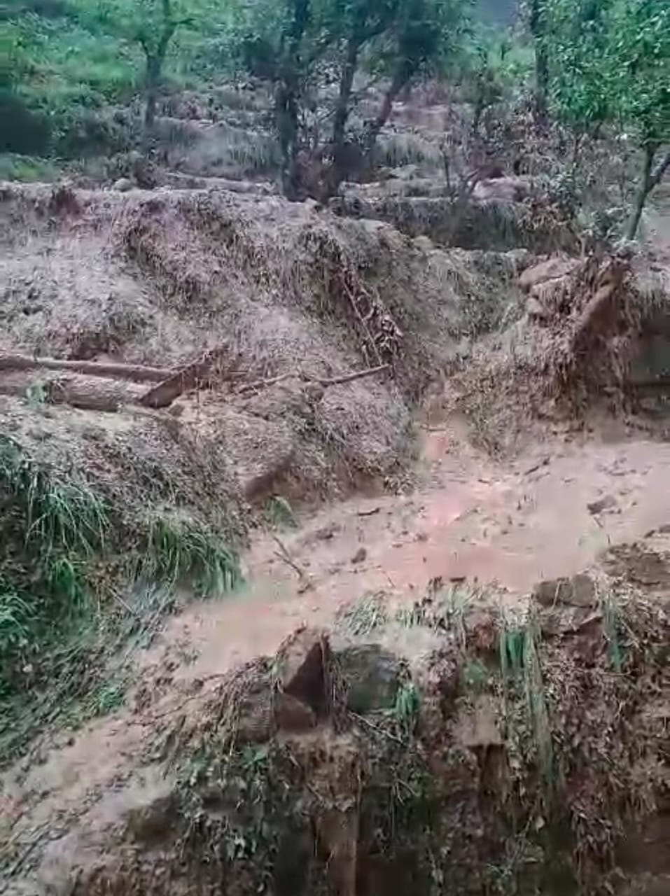 रुद्रप्रयाग : जिले के रुमसी गांव के देवीदार तोक में बादल फटने के कारण स्कूल का रास्ता व कुछ खेतों में मलवा आया है। घटना की सूचना प्राप्त होते ही मुख्य विकास अधिकारी डॉ. जीएस खाती, मुख्य कृषि अधिकारी लोकेंद्र सिंह बिष्ट, खंड विकास अधिकारी अगस्त्यमुनि प्रवीन भट्ट एवं जिला आपदा प्रबंधन अधिकारी नंदन सिंह रजवार तथा राजस्व उप निरीक्षक घटना स्थल के लिए रवाना हुए और घटना स्थल पर पाया कि देवधार में जूनियर हाईस्कूल का रास्ता एवं कतिपय कृषि भूमि का आंशिक रूप से क्षतिग्रस्त हुए हैं। इस घटना में किसी प्रकार से कोई जानमाल, जनहानि एवं पशु हानि नहीं हुई है।