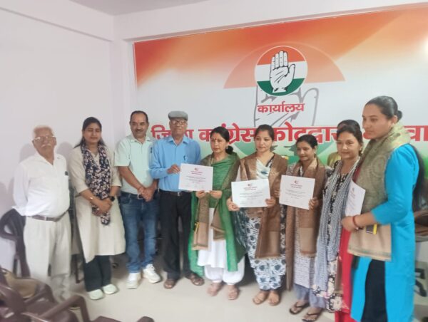 कोटद्वार ।  जिला कांग्रेस कोटद्वार के कार्यकर्ताओं ने भारत के प्रधानमंत्री स्वर्गीय राजीव गांधी की जयंती पर कार्यक्रम आयोजित कर उन्हें श्रद्धांजलि दी । इस अवसर पर पंचायती राज विधेयक के माध्यम से स्व. राजीव गांधी द्वारा महिलाओं के लिए आरक्षण सुविधा प्रदान किए जाने से महिला सशक्तिकरण के क्षेत्र में किए गए कार्यों को स्मरण करते हुए विशिष्ट योगदान प्रदान करने वाली महिलाओं को महिला जिलाध्यक्ष रश्मि पटवाल एवं कांग्रेस जिलाध्यक्ष विनोद डबराल ने सम्मानित किया । जनसेवा के कार्यों एवं महिला सशक्तिकरण के क्षेत्र में विशिष्ट योगदान प्रदान करने पर सम्मानित होने वाली महिलाओं में रंजना रावत पूर्व सभासद, गीता सिंह प्रदेश सचिव महिला कांग्रेस, आशा चौहान, सोनिया नेगी एवं बीना नेगी निवर्तमान पार्षद शामिल हैं।