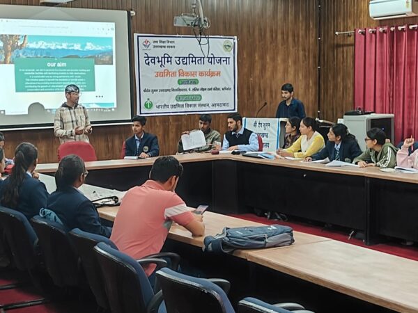 इस से पहले पंकज सिंह बिष्ट ने “Batoi”, अभिषेक घनशाला ने “Kesera”, शिवानी सेमवाल ने “Pure Butes”, एवं दीपिका ने “मंत्र वेदा” नाम से अपने अपने बिजनेस आइडिया/ प्रोपोजल प्रस्तुत किये। तत्पश्चात स्थानीय उद्यमी बीना जखमोला ने गोरिल्ला मार्केटिंग पर विस्तृत व्याख्यान दिया जिसमें बताया कि किसी भी व्यवसाय में डिजिटल मार्केटिंग एवं गोरिल्ला मार्केटिंग के प्रयोग से अधिक लाभ कमाया जा सकता है। उन्होंने बताया कि समय के साथ बदलना आज की जरूरत है प्रतिदिन तकनीक बदल रही है इसलिए तकनीक का इस्तेमाल अति आवश्यक है।