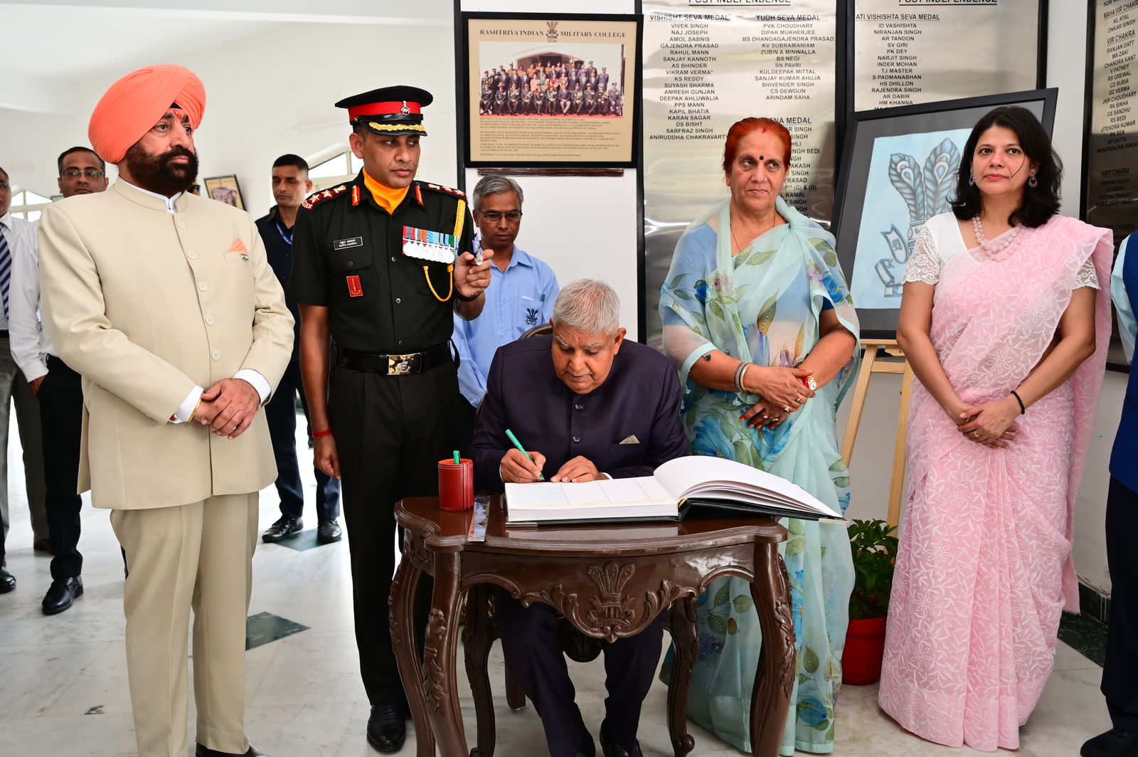 देहरादून : उपराष्ट्रपति जगदीप धनखड़ ने आज देहरादून स्थित राष्ट्रीय भारतीय सैन्य महाविद्यालय (RIMC) के कैडेट्स से आग्रह किया कि वे अपने संस्थान के आदर्श- बल विवेक को चरितार्थ करें और ताकत और ज्ञान विकसित करें ताकि वे जीवन की बड़ी जंग को लड़ सकें। उन्होंने कहा, “ताकत और विवेक एक मजबूत संयोजन बनाते हैं जो चुनौती का सामना करने पर अभेद्यता उत्पन्न करता है।” राष्ट्र के हित को सभी परिस्थितियों में सबसे ऊपर रखने की आवश्यकता पर बल देते हुए, उपराष्ट्रपति ने कहा, “देश की सेवा गर्व और निर्भीकता के साथ करें! भारत माता आपका इंतजार कर रही है। राष्ट्र का भविष्य आपके कंधों पर है। हमेशा राष्ट्रीय हित को प्राथमिकता दें। आपका आचरण अनुशासन, शिष्टाचार और सहानुभूति का उदाहरण होना चाहिए।”