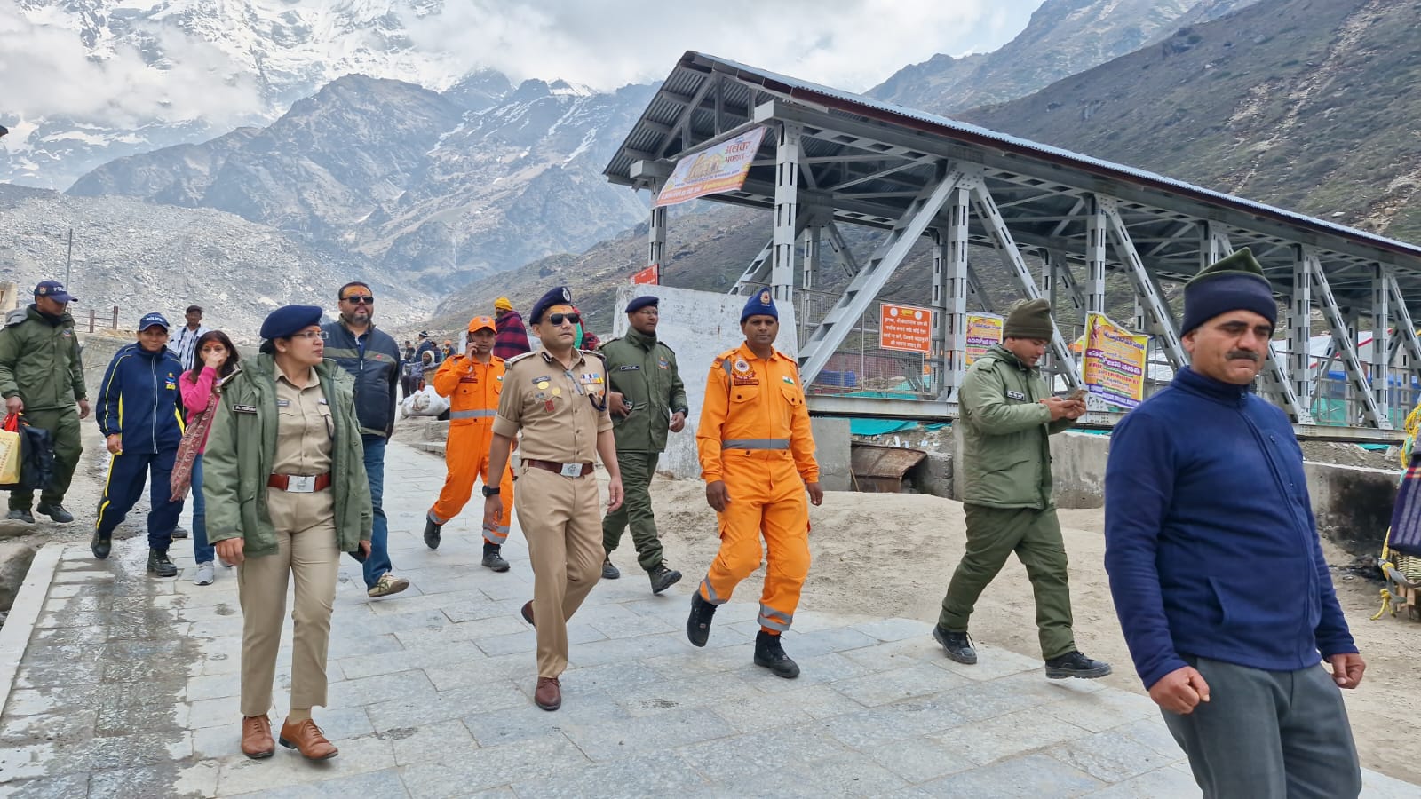 पुलिस महानिदेशक उत्तराखण्ड अभिनव कुमार ने कहा कि आज चार धाम यात्रा के अन्तर्गत केदारनाथ धाम के कपाट खुले हुए आज दसवां दिन है। इस अवसर यात्रा व्यवस्थाओं को देखने मैं स्वयं आया था। इस बार अभी तक जो भीड़ आई है प्रतिदिन तीस हजार से भी अधिक श्रद्धालु दर्शन करके जा रहे हैं। निश्चित रूप से यहां पर जो भी मंदिर व्यवस्था से जुड़ी हुई सारी एजेंसियां हैं, बद्री केदार मंदिर समिति, जिला प्रशासन, पुलिस, एनडीआरएफ एसडीआरएफ, आईटीबीपी, स्वास्थ्य विभाग, पर्यटन विभाग, सूचना विभाग है, सारी टीमें जिस तालमेल के साथ कार्य कर रही हैं, एक बहुत अच्छा उदाहरण है। आने वाले दिनों में भीड़ के दबाव को देखते हुए हमारी कोशिश रहेगी कि यहां पर जो भी पुलिस व्यवस्था है, उसको और सुदृढ़ किया जाए जिससे यात्रियों के लिए हम और बेहतर से बेहतर व्यवस्था कर सकें। इस अवसर पर पुलिस अधीक्षक डाॅ. विशाखा अशोक भदाणे, पुलिस उपाधीक्षक केदारनाथ यात्रा अविनाश वर्मा, चौकी प्रभारी केदारनाथ मंजुल रावत सहित पुलिस, पीएसी, एसडीआरएफ, एनडीआरएफ के जवान मौजूद रहे।