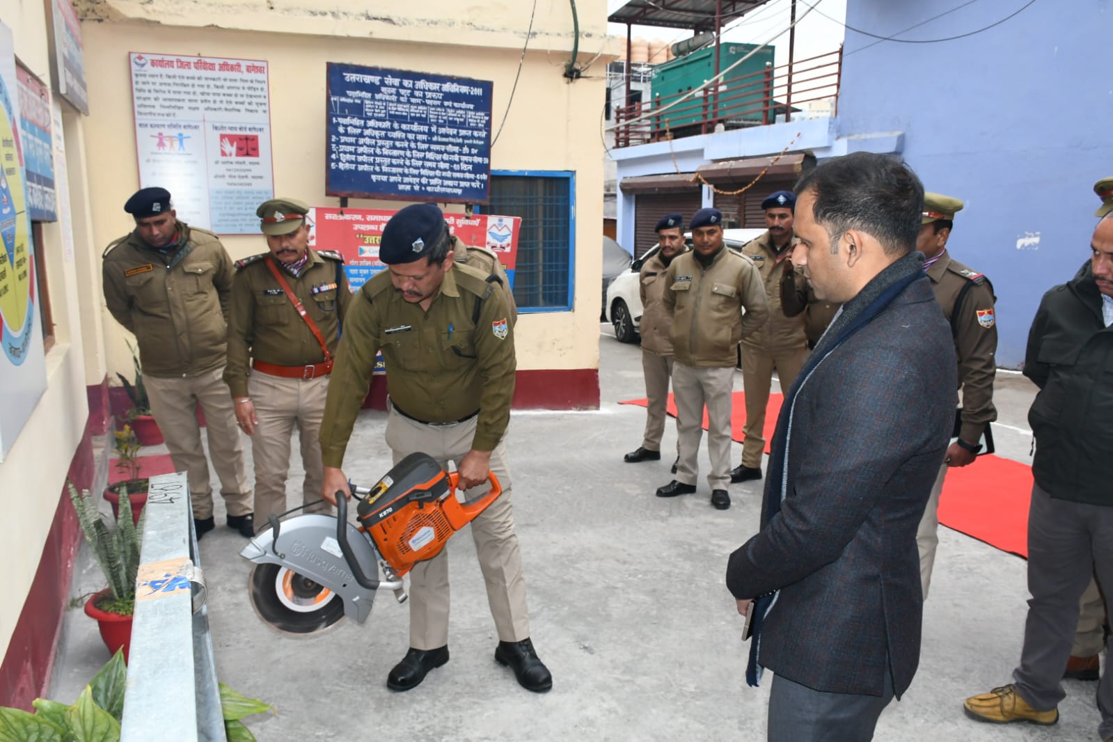उन्होंने सत्यापन के कार्यो को भी पूर्ण पारदर्शिता से साथ समय पर पूरा करने के निर्देश दिए। तथा फरियादियों की समस्याओं को ध्यानपूर्वक सुना जाय। यदि कोई फरियादी प्राथमिकी दर्ज कराने आता है तो उसकी प्राथमिकी दर्ज की जाय तथा समय पर विवेचना करके आवश्यक कार्यवाही सुनिश्चित की जाय। उन्होंने बाल मित्र कक्ष का निरीक्षण किया तथा खोया-पाया व गुमशुदा संबंधी जानकारी ली तथा वहां बच्चों के लिए खेल सामग्री व मनोरंजन सामग्री के साथ ही शुद्ध पेयजल आदि सुविधाओं को बारे में जानकारी ली। आपदा उपकरणों के निरीक्षण के दौरान जिलाधिकारी ने कहा कि उपकरणों को हमेशा क्रियाशील अवस्था में रखा जाय। शहर में यातायात व्यवस्था एवं नागरिकों की सुरक्षा के दृष्टिगत सीसीटीवी कैमरों की निरंतर निगरानी रखी जाए। आवश्यक हो तो सीसीटीवी कैमरों की संख्या बड़ाई जाए। निरीक्षण के दौरान थानाध्यक्ष कैलाश नेगी, एलआईयू इंस्पेक्टर विजय कुमार मठवाल सहित अन्य पुलिस अधिकारी उपस्थित रहे।