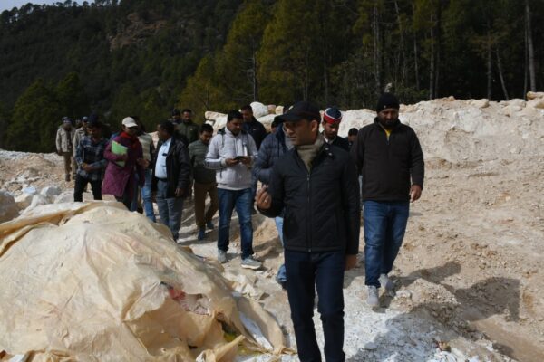 बागेश्वर : जिला प्रशासन की सख्ती के चलते खड़िया संचालकों में खलबली मची हुई है। जिला एवं तहसील एंटी इलीगल माइनिंग फोर्स खड़िया खदानों का स्थलीय निरीक्षण कर मानकों की जांच पड़ताल कर रही है। इस सिलसिले में शनिवार को जिलाधिकारी आशीष भटगांई ने विकास खण्ड कपकोट के रीमा खनन क्षेत्रों का दौरा किया। कई खड़िया खुदानों का स्थलीय निरीक्षण कर उनके मानकों की पड़ताल की। तथा मौके पर उपस्थित अधिकारियों को हिदायत देते हुए खड़िया खुदानों के मानकों की बारीकी से जांच करने एवं गड़बड़ी मिलने पर नियमानुसार कार्रवाई करने के निर्देश दिए।