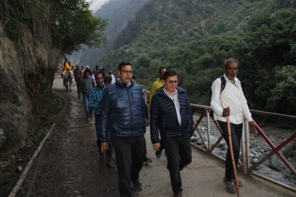 उत्तरकाशी : जिलाधिकारी डॉ. मेहरबान सिंह बिष्ट ने यमुनोत्री क्षेत्र के भ्रमण के दौरान आज साँय को जानकीचट्टी से यमुनोत्री पैदल मार्ग पर यात्रा व्यवस्थाओं का जायजा लेने के साथ ही तीर्थयात्रियों से मुलाकात कर यात्रा के बारे में उनके अनुभवों को जाना। देश की बिभिन्न हिस्सों से आये यात्रियों ने जिलाधिकारी से बातचीत में यात्रा व्यवस्थाओं पर संतोष व्यक्त करते हुए कहा कि यमुनोत्री धाम की यात्रा पर आकर उन्हें अत्यंत सुखद अनुभूति हुई है।