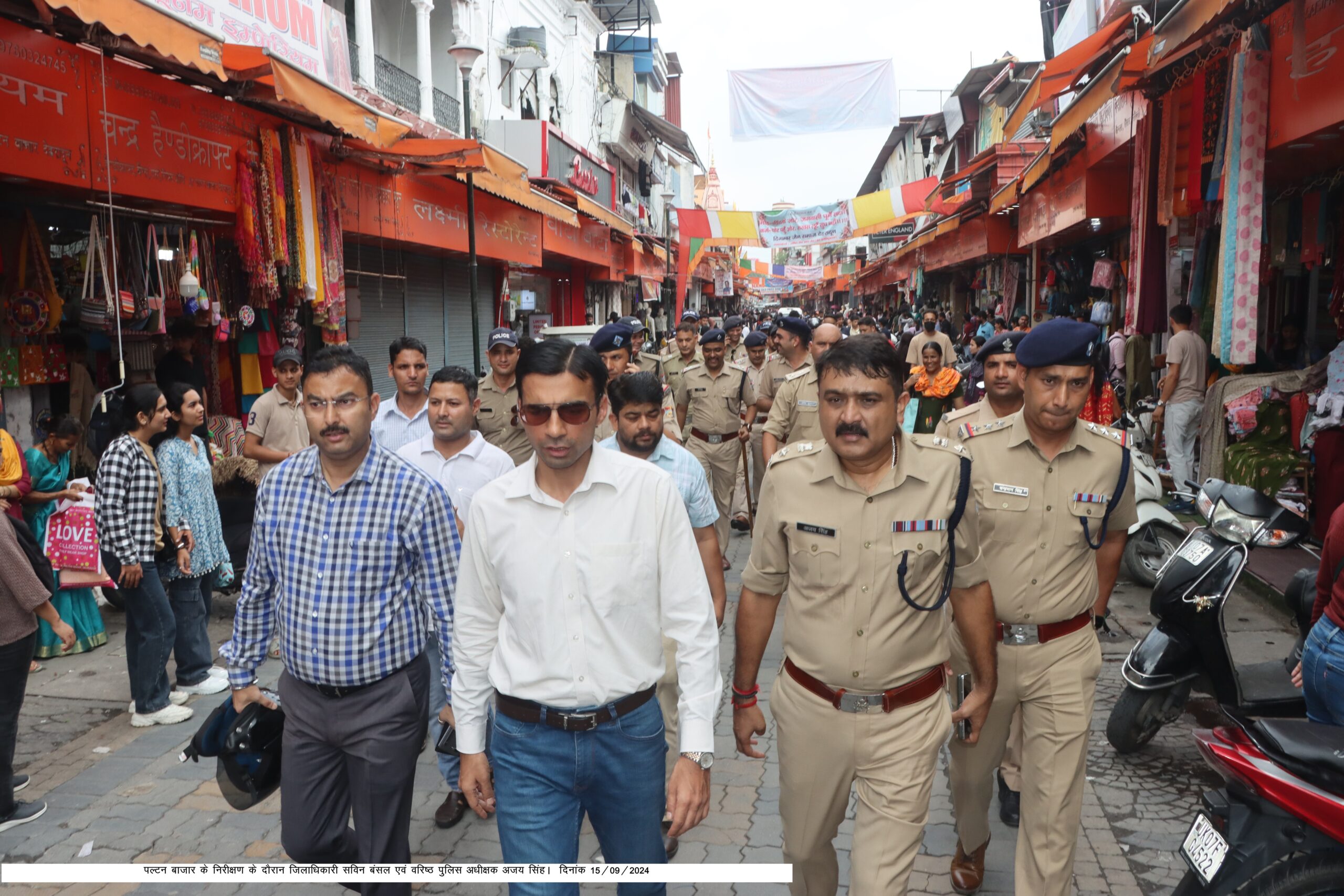 देहरादून : जिलाधिकारी सविन बंसल एवं वरिष्ठ पुलिस अधीक्षक अजय सिंह ने आज मोटरसाईकिल पर सवार होकर संयुक्त रूप से शहर का निरीक्षण किया। सर्वप्रथम जिलाधिकारी आवास से एक ही मोटरसाईकिल पर सवार होकर जिलाधिकारी एवं वरिष्ठ पुलिस अधीक्षक घंटाघर पंहुचे, यंहा उन्होंने जाम से निजात दिलाने तथा पार्किंग व्यवस्था हेतु संभावनाएं देखी। उन्हांने घंटाघर से पैदल पल्टन बाजार का निरीक्षण किया, जहां जिलाधिकारी ने पल्टन बाजार को अतिक्रमण मुक्त रखने के निर्देश दिए, वहीं पार्किंग हेतु छोटे-2 स्थान चिन्हित करने के भी निर्देश दिए। उन्होंने शहर में जाम के लिए जिम्मेदार घटकों एवं संरचनाओं को चिन्हिकरण कर हटाने तथा फूटओवर ब्रिज की संभावनाएं तलाशने के निर्देश दिए।
