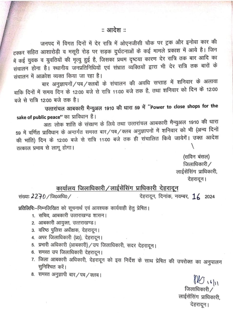 डीएम सविन बंसल ने वर्षो पुरानी प्रथा को एक झटके में किया खत्म, अब देहरादून में रात 11 बजे तक ही संचालित होंगे पब और बार