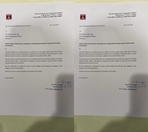 • ब्लॉक कालसी व चकराता के स्कूल हुए सीएसआर फर्नीचरयुक्त; अब डोईवाला, रायपुर, विकासनगर व सहसपुर के स्कूलों की है बारी