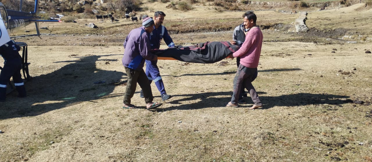 Home » Blog » मुख्यमंत्री पुष्कर सिंह धामी के सराहनीय प्रयासों से पैरालाइज मरीज हैली एंबुलेंस से पहुंचा अपने दूरस्थ गांव डुमक