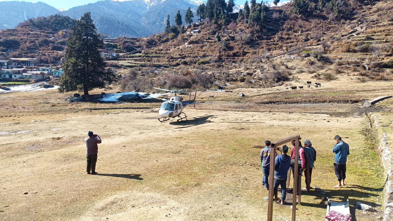 मुख्यमंत्री पुष्कर सिंह धामी के सराहनीय प्रयासों से पैरालाइज मरीज हैली एंबुलेंस से पहुंचा अपने दूरस्थ गांव डुमक