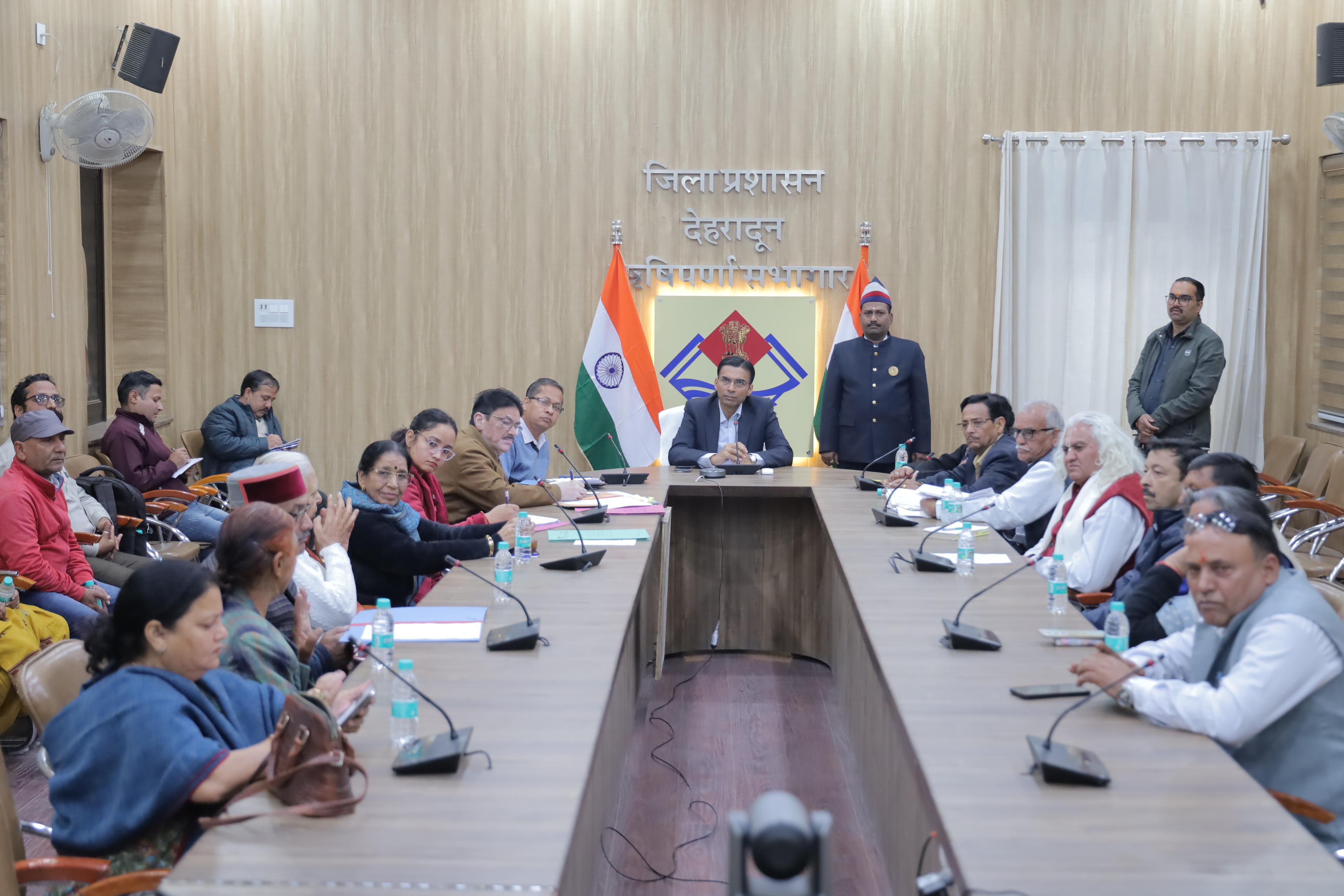 देहरादून : जिलाधिकारी सविन बंसल ने ऋषिपर्णा सभागार में उत्तराखण्ड राज्य आन्दोलनकारियों को स्वयं बैठक में आमंत्रित कर उनकी की समस्याएं एवं उनके सुझावों से हुए रूबरू। सर्वप्रथम जिलाधिकारी ने आंदोलनकारियों का स्वागत किया आपके संघर्षों से हम यहां बैठे हैं, हम आंदोलनकारियों के योगदान के ऋणी है। जिलाधिकारी ने इत्मिनान से उपस्थित सभी आंदोलनकारियों को ध्यान से सुना।
