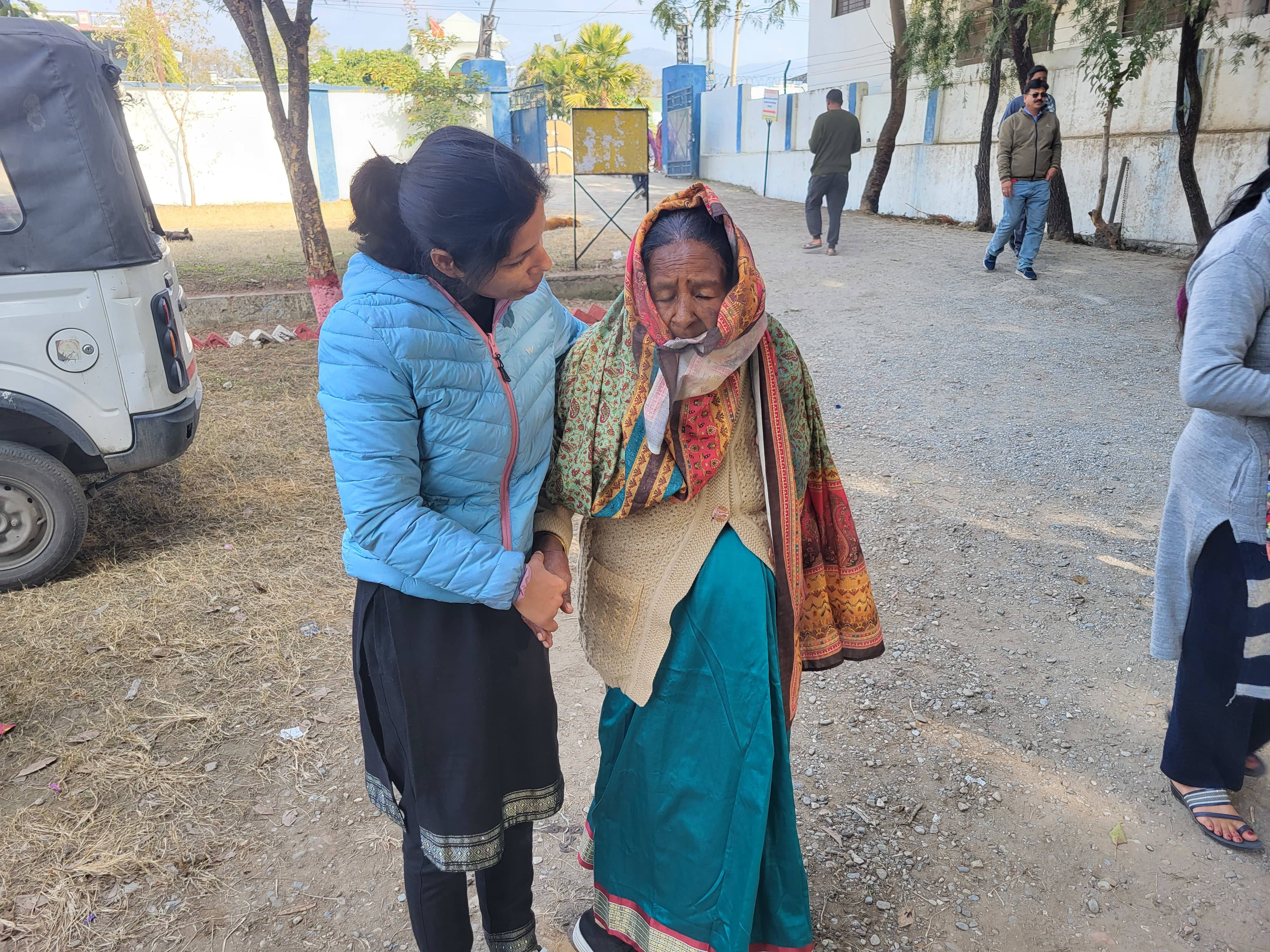 चन्द्रमणी भटट जी जिनकी आयु 101 वर्ष है को घर से मतदेय स्थल पर लाने लेजाने एवं मतदान स्थल पर बाधा रहित मतदान कराने की सुविधा उपलब्ध करायी गयी।