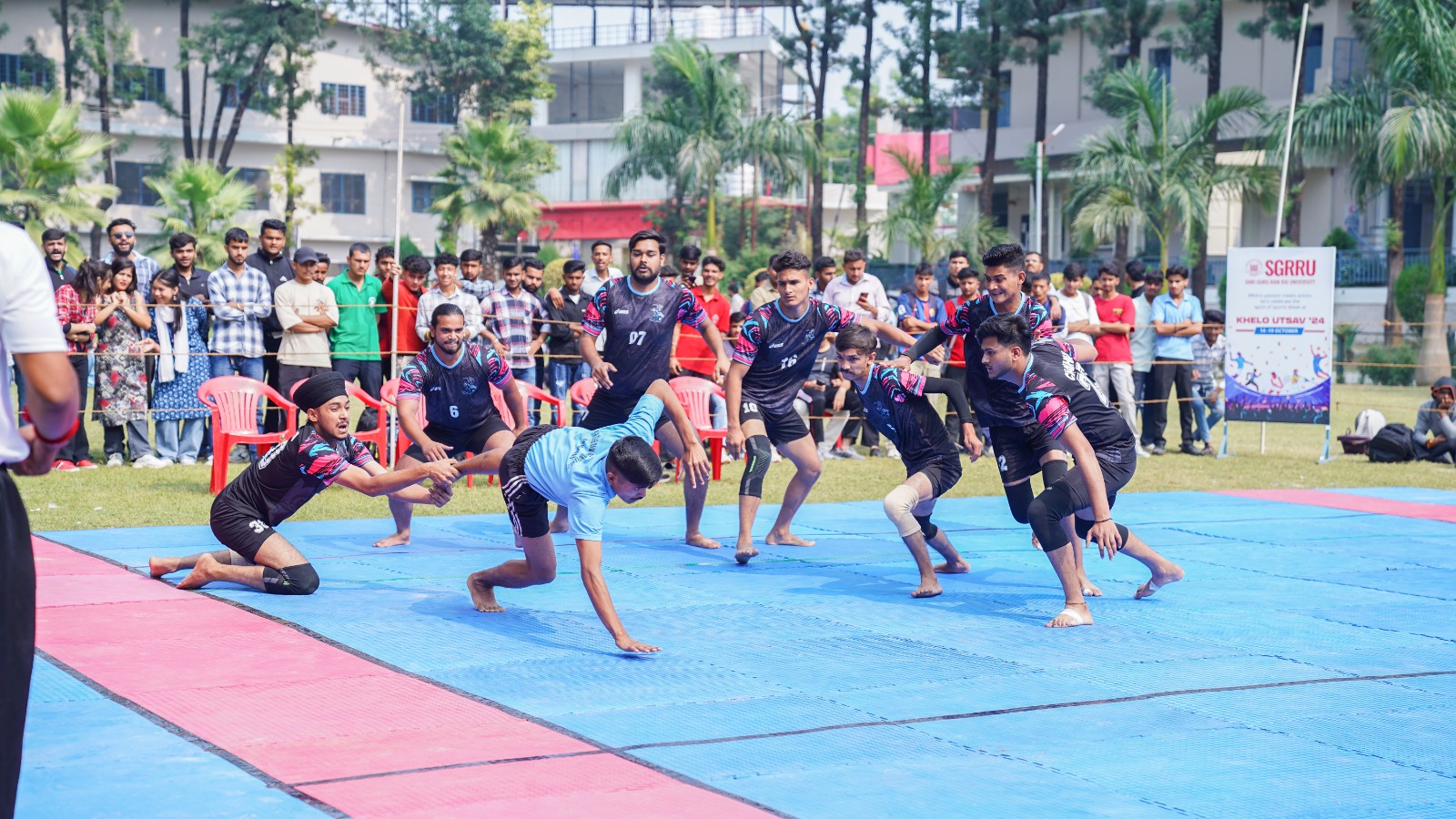 देहरादून। श्री गुरु राम राय विश्वविद्यालय (एसजीआरआरयू) की वार्षिक खेलकूद प्रतियोगिता खेलोत्सव का पाॅचवा दिन फुटबाॅल, कबड्डी, खो-खो, डिस्कस थ्रो, भाला फेंक, गोला फेंक, लंबी कूद, ट्रिपल जंप एवम् क्रिकेट प्रतियोगिताओं के नाम रहा। स्कूल ऑफ ह्यूमैनिटीज ने रोमांचक मुकाबले में फुटबाल का फाइनल जीता।  शुक्रवार को श्री गुरु राम राय विश्वविद्यालय के अलग-अलग खेल मैदानों पर चौथे दिन की प्रतियोगिताओं का शुभारंभ डॉ. अजय कुमार खण्डूड़ी, कुलसचिव एसजीआरआर विश्वविद्यालय, डॉ. आर.पी.सिंह, समन्वयक एसजीआरआरयू, खेलोत्सव के सचिव सत्य प्रकाश जोशी, डॉ. पुनीत ओहरी, डॉ. दीपक सोम, डॉ. वैभव शर्मा ने संयुक्त रूप से किया।