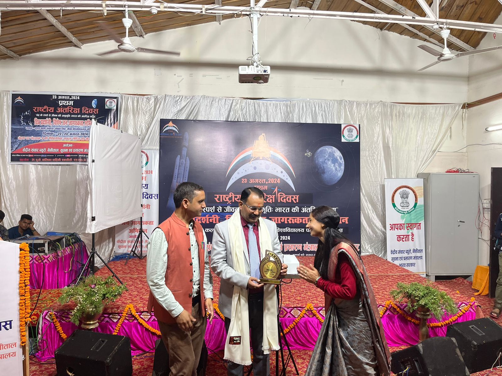 अल्मोड़ा : एसएसजे परिसर, अल्मोड़ा में प्रथम राष्ट्रीय अंतरिक्ष दिवस का रंगारंग कार्यक्रमों के साथ समापन हो गया. समापन समारोह के मुख्य अतिथि कुलपति सतपाल सिंह बिष्ट ने कहा कि यहां से प्रेरणा लेकर हमारे शिक्षार्थी अगर वैज्ञानिक बन पाएंगे तो ये कार्यक्रम सफल माना जायेगा. विशिष्ट अतिथि एनसीसी कमांडिंग अधिकारी कर्नल मनोज कांडपाल ने कहा कि आने वाला दौर ज्ञान और विज्ञान का ही है. जिसके पास ज्ञान और विज्ञान है वो सफल है. विषय विशेषज्ञ के तौर पर एरीज के वरिष्ठ वैज्ञानिक डॉ मोहित जोशी ने ऑडियो विजुअल प्रस्तुति के साथ उपस्थित लोगों को समझाया कि कैसे अंतरिक्ष में भारत की उपलब्धियों का फायदा चिकित्सा से लेकर तकनीक में भारत के आम आदमी को मिल रहा है. वरिष्ठ वैज्ञानिक नवीन जोशी ने कहा कि प्रदर्शनी,प्रतियोगिताओं और सांस्कृतिक कार्यक्रमों के माध्यम से साइंस को रोचक बनाकर पेश करना सीबीसी की अनूठी पहल है.