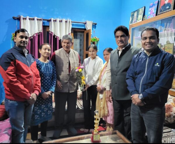 पूर्व मुख्यमंत्री हरीश रावत ने अंडर 14 और अंडर 17 में प्रतिभाग करने वाली छात्रा रिया खत्री को किया सम्मानित